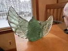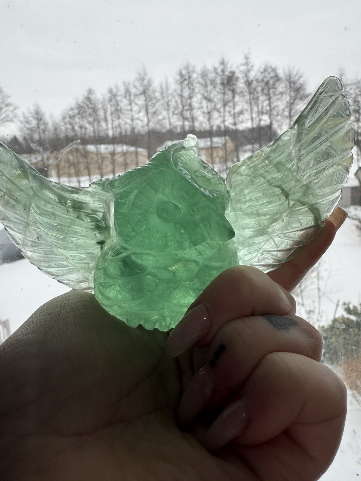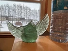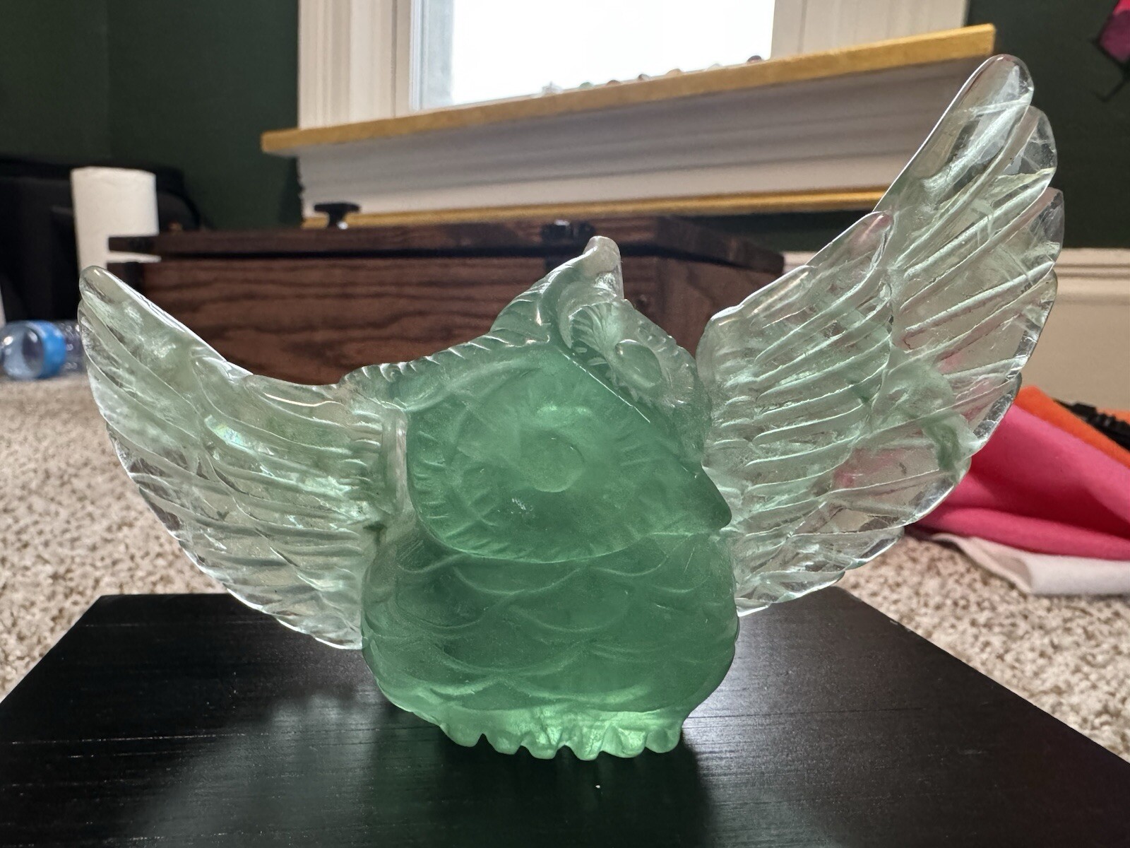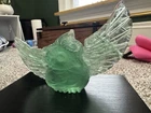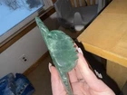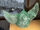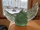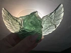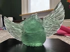 Make me an offer! This beautiful teal-green fluorite carving features a charming owl shape that is sure to capture the attention of any collector. The intricate details of the hand carving make this piece a unique addition to any collection of crystals and mineral specimens. The unique color of the fluorite adds to its beauty, making it a great decorative piece for any home or office. The color is truly phenomenal, a glowing unique specimen for sure! In all my searches, i have yet to find another like this baby. Especially all one beautiful band of color! 5.5 inch wingspan from end to end, 3 inches tall All crystals are "used", we take from mother earth, we appreciate with our hands, we carve, and we appreciate, so no matter if its in a box on a shelf for years or not, we consider all crystals "used" with like new condition. All with love 🩵
