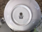 Vintage Teal Footed Wide Mouth Paragon Teacup and Saucer with Floral Center of Carnations and Gold Accents / Gold Trim in Very Good Condition. The cup measures approximately 2 1/4 inches in height and 4 inches in diameter the saucer 5 1/2 inches. Please note the paragon logo is faded on the cup and there is a chip on the rim of the saucer’s backside slight gold loss.There are no utensil marks but there is a scratch on the footed gold section of the cup and a couple of manufacturer marks refer photos. U.S. customs tax to be paid by buyer.