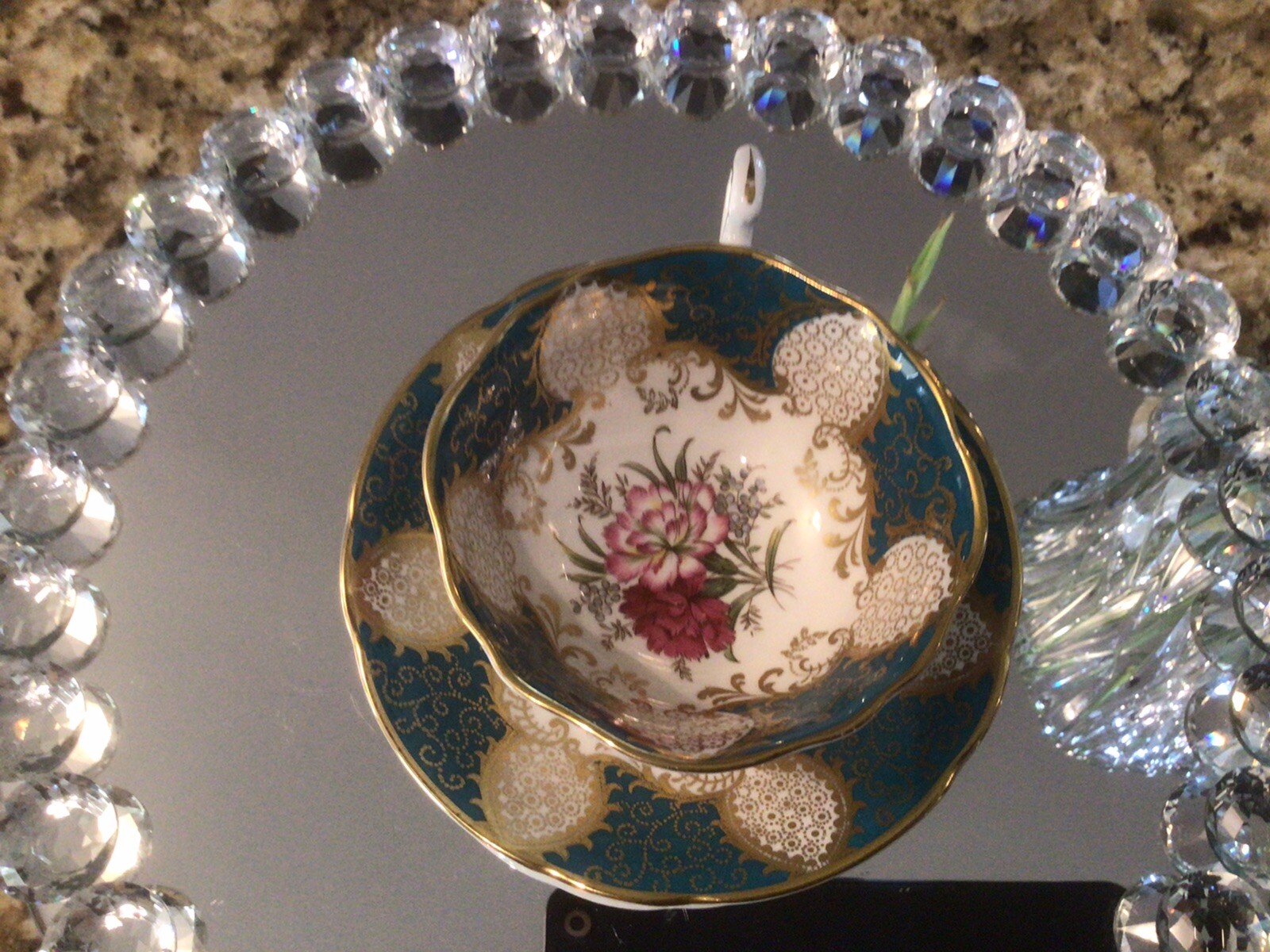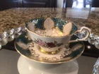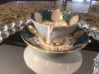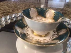 Absolutely stunning vintage teacup! The teal and gold combo is elegant, and the delicate floral design adds a charming touch. Despite minor wear, it’s in great condition—perfect for tea lovers or collectors. A beautiful piece that brings classic charm to any tea time!