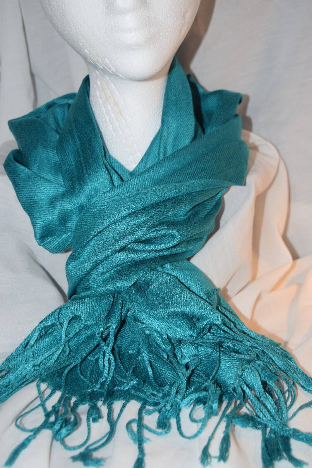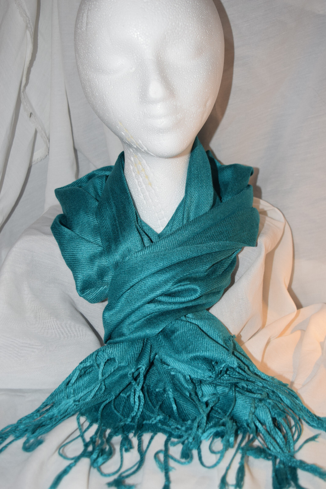 This beautiful teal scarf is the perfect addition to your wardrobe. Made of high-quality pashmina material, it is both soft and durable. The scarf features a solid pattern with fringe accents, adding a touch of elegance to any outfit. This scarf is versatile and multifunctional, perfect for any season. It measures 26" x 70" with a 4" fringe, making it the perfect size for wrapping around your neck or shoulders. Whether you're dressing up or dressing down, this scarf is sure to complement any outfit. First let us say "Thank you for visiting Southern and Curvy!" We will be glad to answer any questions you have! Take a look at the pics and let us know! We will also be happy to combine shipping for those that want to purchase multiple items. Let us know so that we can adjust shipping cost as the discount is not applied automatically. We strive to earn positive 5 star feedback for all our items. We will reciprocate positive feedback for all excellent buyers. If you feel we deserve anything less or there is a problem, please send us a message before leaving feedback. We will be glad to see what we can do to fix the issue. We will accept returns with the return shipping paid by the buyer. Cost of item ONLY will be refunded upon receipt of item. Beginning November 2023, when NWT items are returned, we expect them to still be NWT. Unfortunately, there have been instances when we will receive a return after being worn. This makes the item no longer new and/or in a further used condition. Therefore we have had to implement a tag system that is attached to each piece of clothing. All future returns will only be issued if the tag is still intact upon its return back to Southern & Curvy. We do appreciate your understanding. Add us to your favorites!