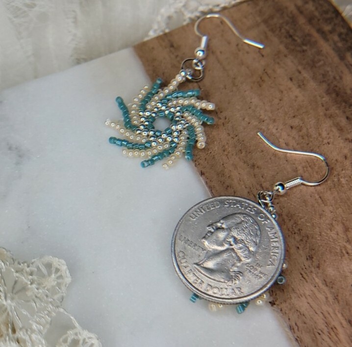 Teal Pinwheels silver Plated Hooks Earrings. Handmade by me 🥰 I used • czech glass beads • Miyuki rounds beads • Glass seed beads and • silver plated hooks Nickel free materials. Colors Teal, Pearl cream and silver More color and designs listed in my closet 😉 Item P0HM2F1310 Tags Handmade hand crafted fall Halloween costume event fashion style boho party essential fun autumn
