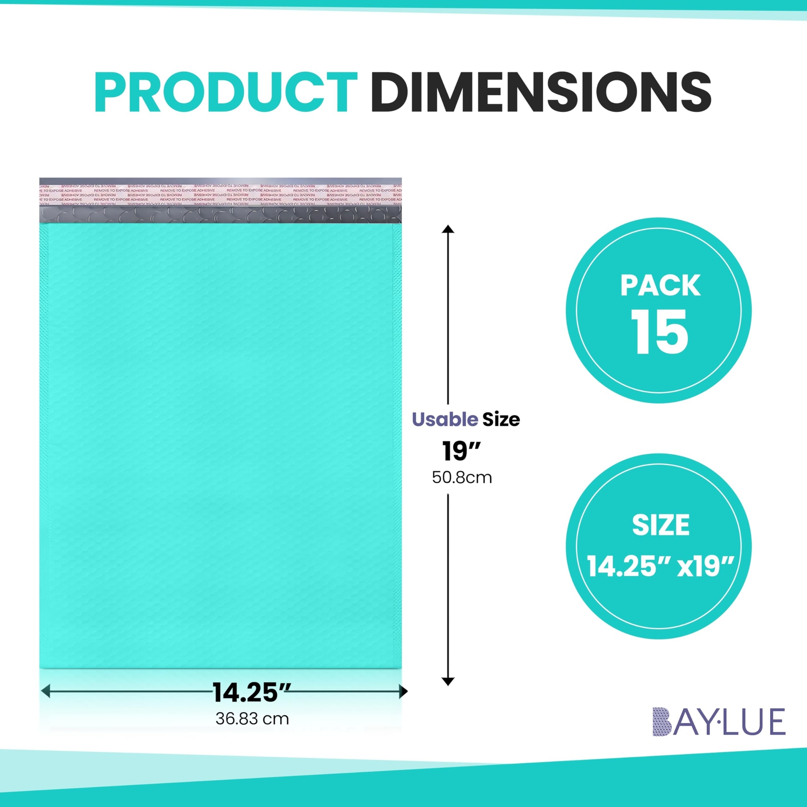 Extra Large Size - Teal Poly Bubble Mailers measure a spacious 14.50x20 inches, providing ample room for shipping larger items. With a usable size of 14.25x19, these mailers are perfect for clothing, documents, and other sizable Items. Secure Shipping - Equipped with a self-seal tape, these bubble mailers ensure that your items are securely enclosed. The strong adhesive strip is designed to keep the contents intact during transit. Durable Protection - Crafted with water and tear-resistant materials, the padded envelopes offer reliable protection against the elements and handling. Your items stay safe and dry, no matter the journey. Eco-Friendly Design - The lightweight yet robust construction of these shipping bags not only reduces postage costs but also minimizes environmental impact. Ship your goods with confidence and care for the planet. Vibrant Presentation - Stand out with the Teal Poly Bubble Mailers. The eye-catching teal color adds a memorable touch to your packages, enhancing your brand's image and customer experience.
