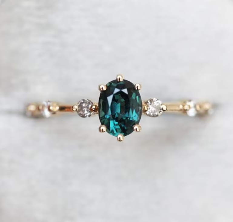 Ring Size :- All Sizes are Available,, ? Handmade, high-quality item! ? Material: 92.5 Sterling Silver (Can be made in white/rose/yellow gold) ? Gemstone Type : Teal Sapphire ? Center stone Shape and Cut: cushion Cut ? Gemstone Size: 8 X 10 MM ? Gemstone Depth - 4.25 MM ? Gemstone Weight - 3.50 Carat ? Color: Peacock Green ? Clarity: Transparent ? Quality: AAA