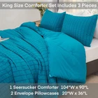 Color:TealSize:KingStyle:ChicRoom:BedroomType:Comforter SetProduct Care Instructions:Machine WashCare Instructions:Machine Wash, Do Not Bleachgtin13:Does not applyItem Weight:6.77 PoundsNumber Of Pieces:3Insulation:All SeasonsTheme:SeasonalFabric Type:SeersuckerSeason:AllThread Count:201-400Pattern:SolidSet Includes:Comforter, PillowcaseGSM (Grams per Square Meter):301 to 450Item Dimensions L X W X H:7 X 7 X 16 InchesDepartment:AdultsUPC:Does not applyProduct Dimensions:7 X 7 X 16 InchesMaterial:Microfiber, SeersuckerFill Material:300 GSMPersonalize:NoNumber of Items in Set:3Brand:UnbrandedSeasons:AllFeatures:Lightweight, Breathable, Comfortable, Soft, Pet Friendly