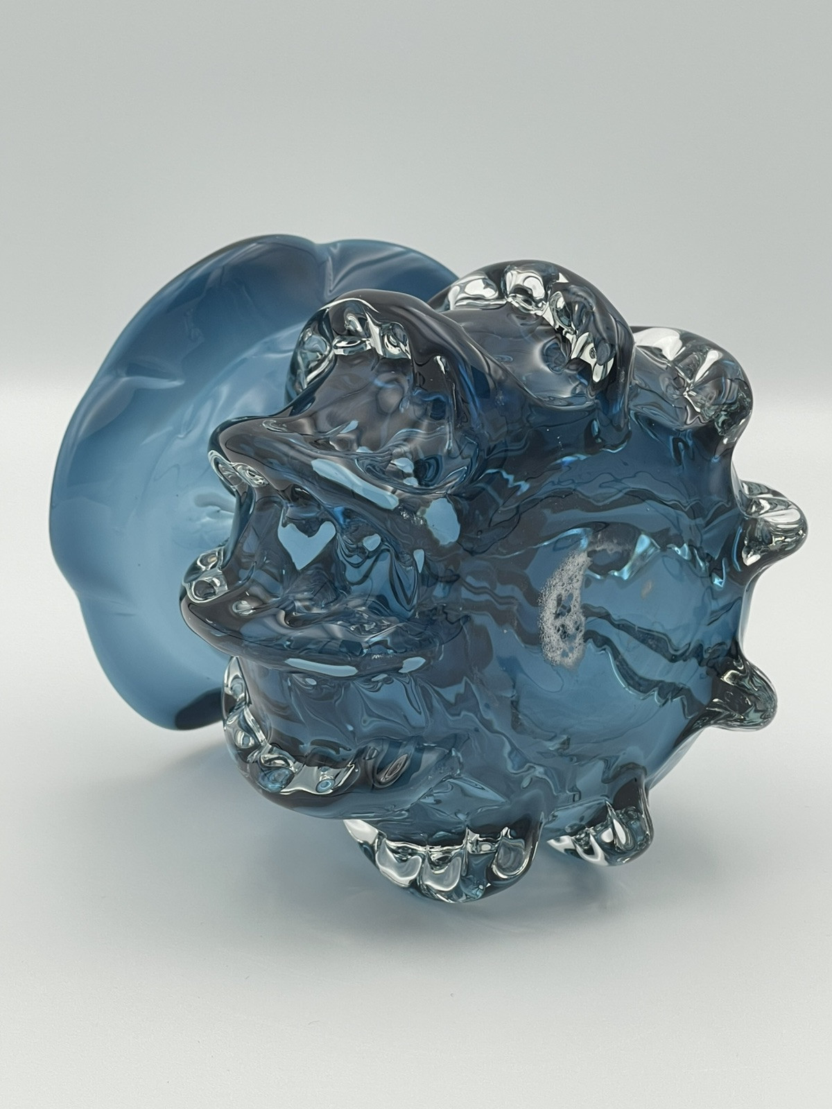 This Teal Vertical Fluted Glass Wavy Rim Hobby Lobby Giallo & Blu Collection Vase is a stunning fish bowl-shaped art vase with a raised ribbed pattern, reminiscent of ocean waves. The teal color and vertical fluted design add a touch of romanticism, perfect for any room in your home. Made of glass and measuring 4.5 inches in length, this vase is easy to care for and does not require any additional parts. It is a beautiful piece that brings a nautical theme to your decor from the Hobby Lobby brand.