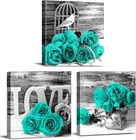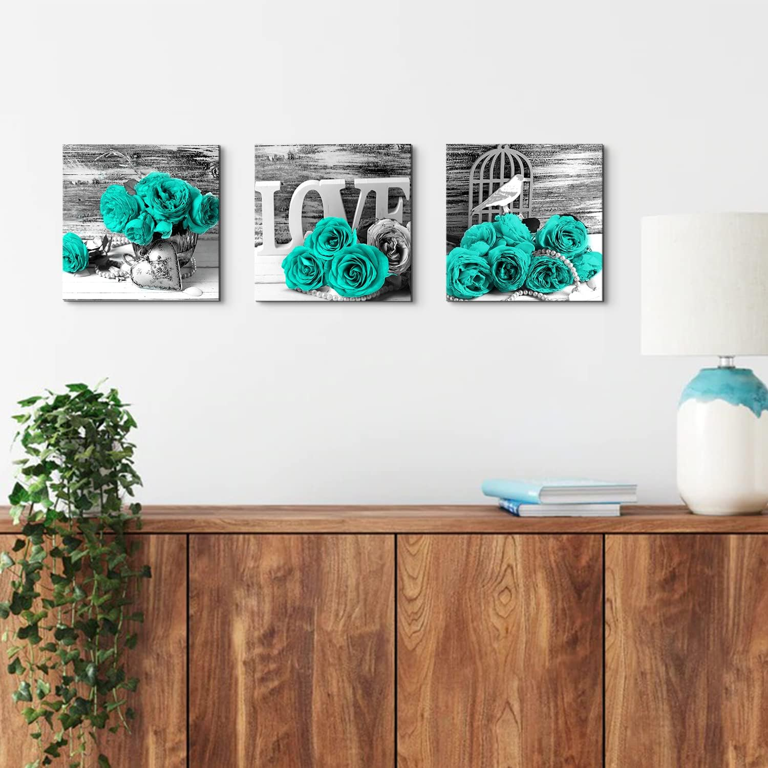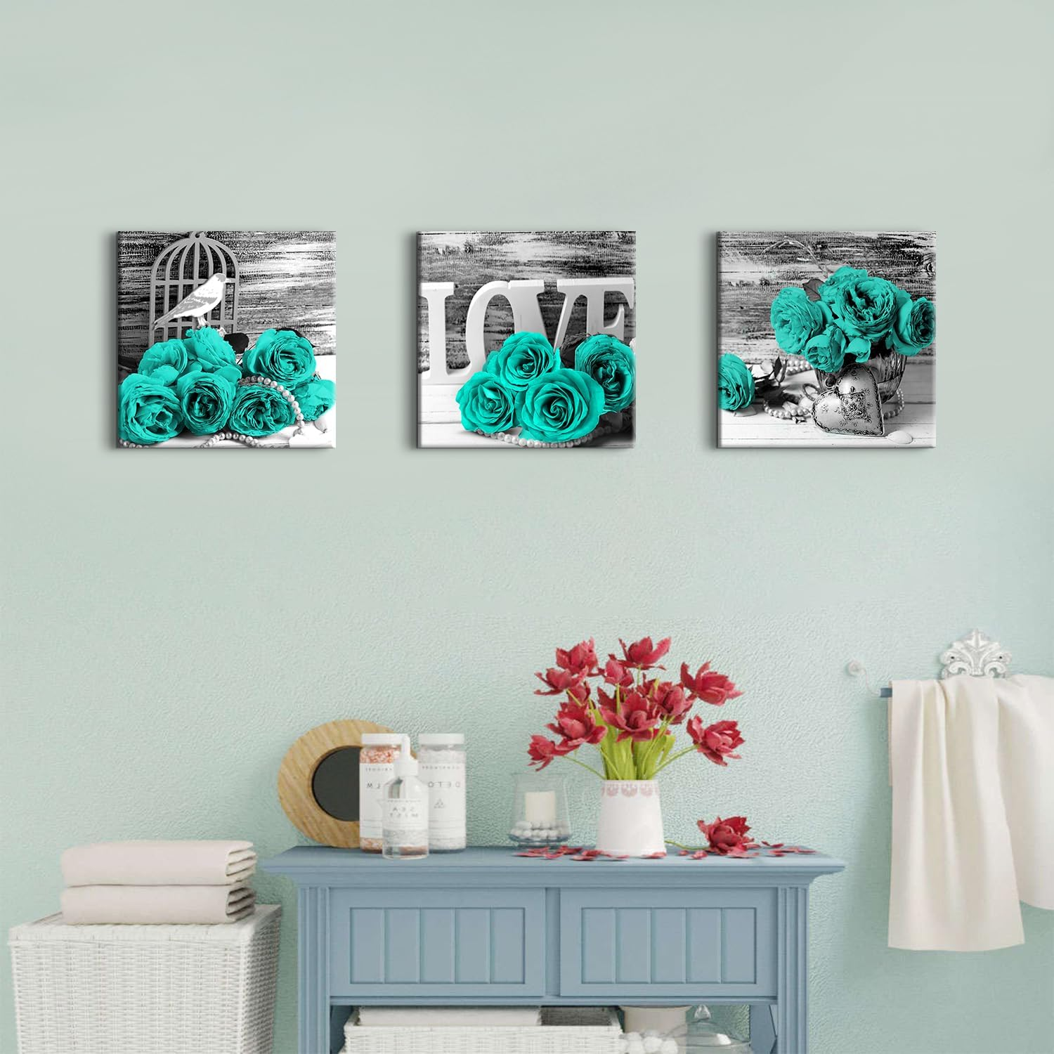 Absolutely love this set! The teal and grey rose design adds a fresh, elegant touch to my bathroom. The colors are vibrant, and the glossy finish makes it pop. Perfect size at 12x12 inchesâeasy to hang and looks stunning. Great quality for the price, and the three-piece set creates a cohesive look. Highly recommend for anyone wanting to brighten up their space!
