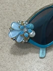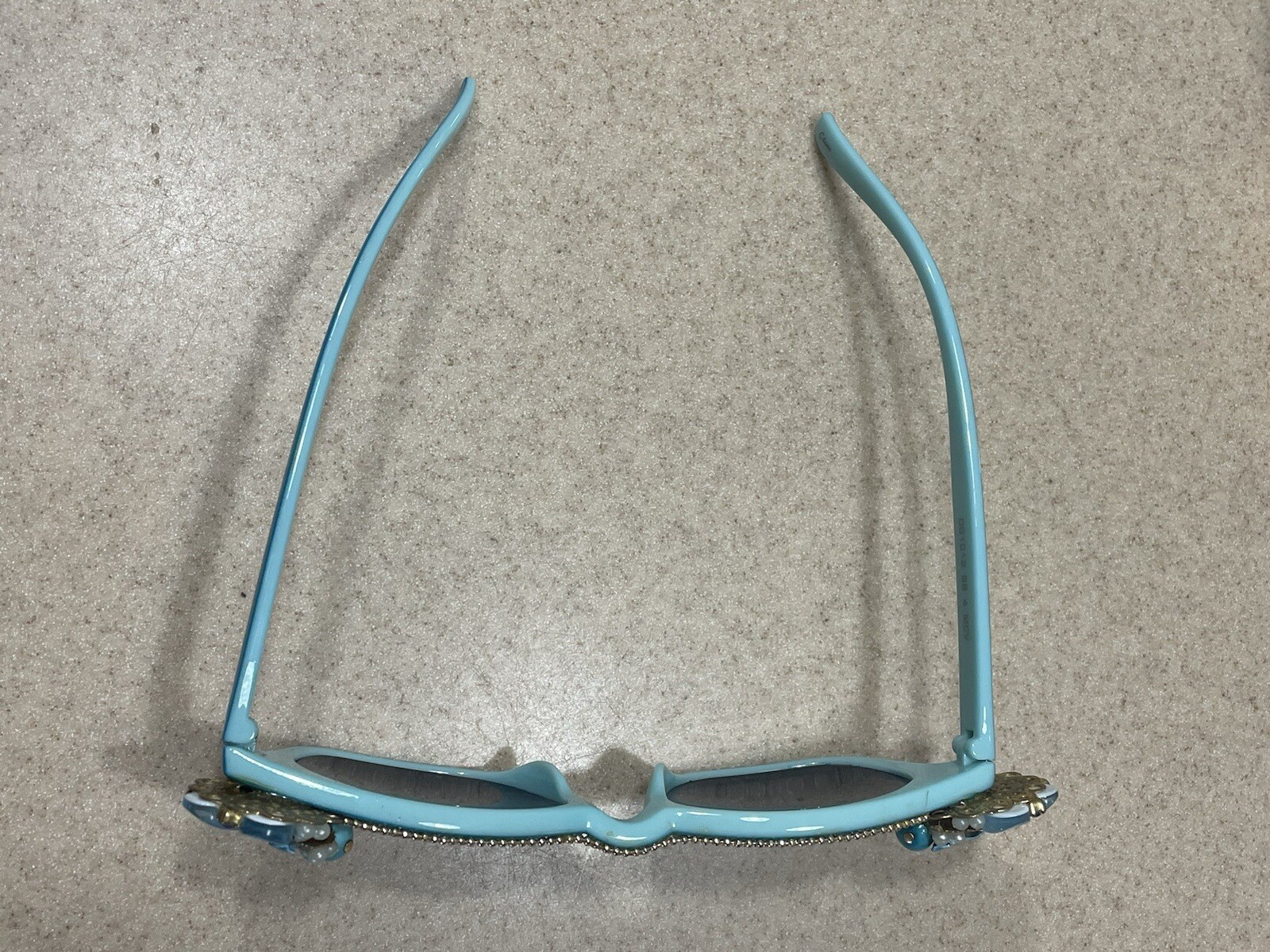 Add a touch of vintage glamour to your wardrobe with these teal blue rockabilly style cat eye sunglasses. The funky retro design is perfect for any occasion and will make you stand out from the crowd. The black lenses add a classic touch to the frame, while the blue frame color with flower embellishments give it a unique and eye-catching look. These sunglasses are perfect for women who want to add a touch of personality to their style. Condition is preowned. Ships USPS. I will combine shipping upon request… Check out my other listings.