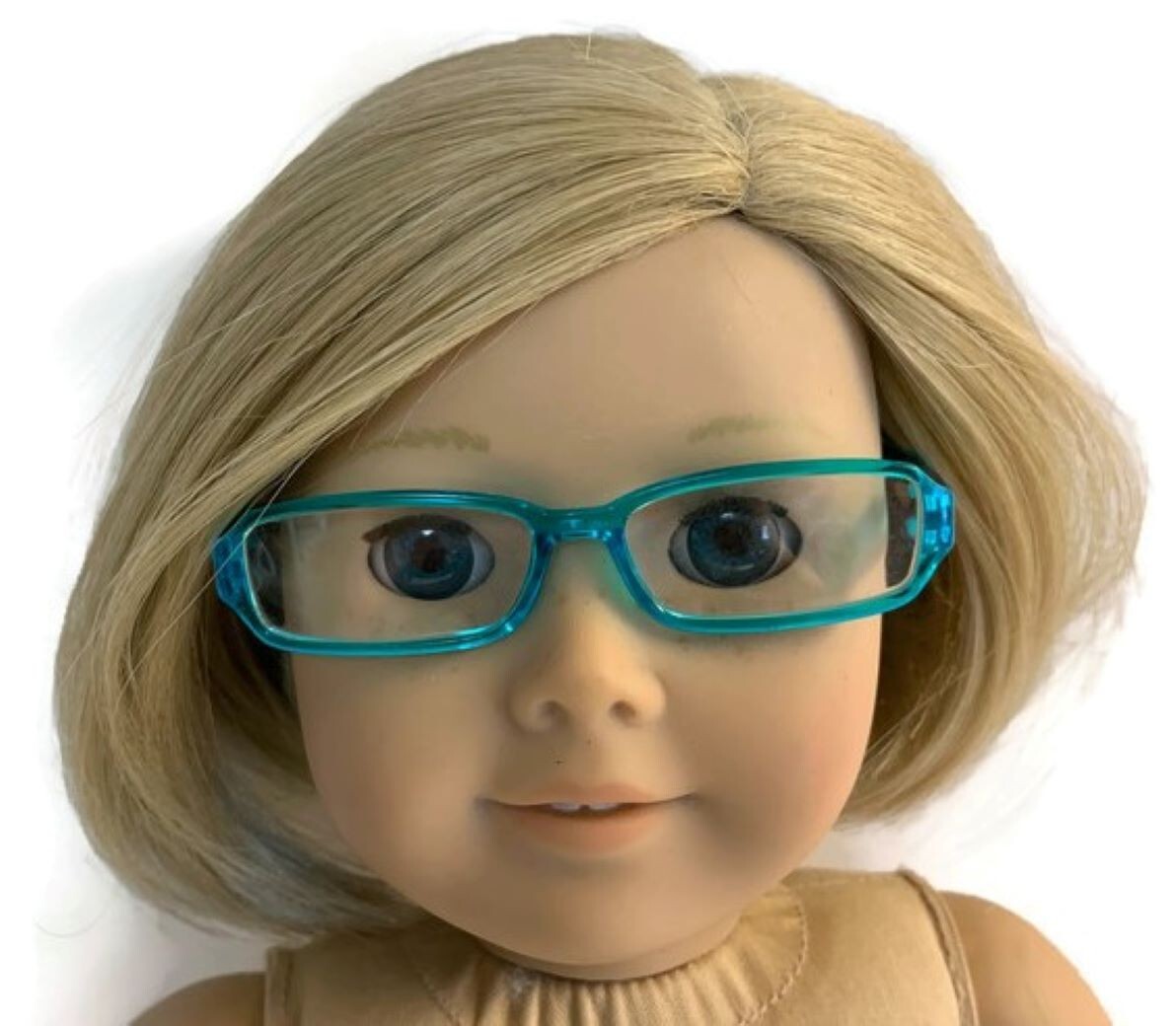 Teal Rectangular Framed Glasses •Brand new •Fits 18 inch dolls •Plastic lenses •3 inches wide •Doll not included If you plan to purchase additional items from me please use the ADD TO CART button to purchase. Any additional items ship free and the system will automatically calculate the combined shipping rate at checkout. For more doll clothes, shoes and accessories Visit My eBay Store: Dori's Doll Boutique