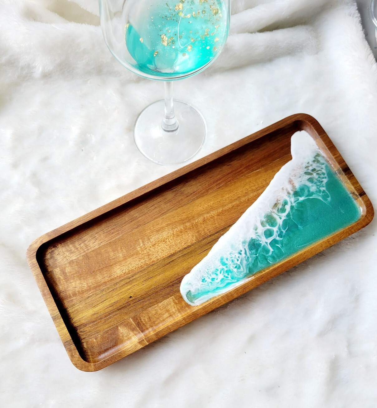 This teal vanity tray is stunning and so versatile! The resin material feels high-quality, and the color adds a pop of elegance to my dresser. Perfect for organizing jewelry, perfumes, or even small decor pieces. Love that it’s food-safe and easy to clean. The size is just right—not too big, not too small. Definitely a stylish and functional addition to any space!