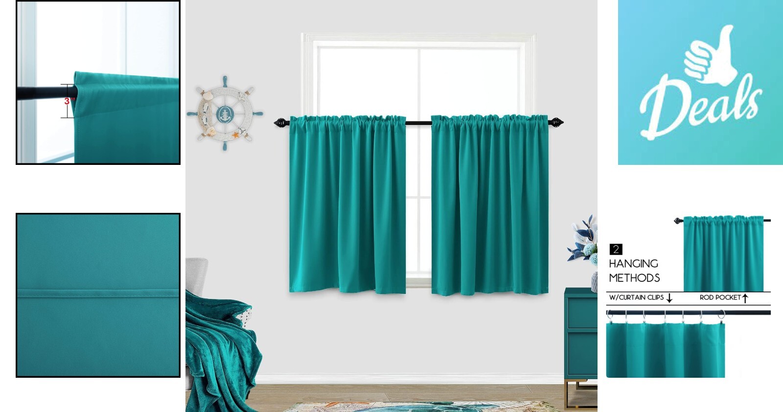 Teal Curtains Rod Pocket Cafe Thermal Insulated Darkening Blackout Window ‹ › ‹ › ‹ › ‹ › ‹ › ‹ › ‹ › ‹ › Teal Curtains Rod Pocket Cafe Thermal Insulated Darkening Blackout Window -2 Pack light blocking tiers curtains measures 34" width by 36" length. -The fabric of curtain tiers can block 90-99% uv & sun lights for privacy of bathroom and kitchen. -Double header design for easy sliding. -Easy match with our blackout curtains and valances for home decor. -Good quality finishing will withstand years of use. -Machine washable for easy maintenance. Benefits: Provides privacy and blocks out sunlight Thermal insulated to keep your home cool in the summer and warm in the winter Easy to slide on and off the curtain rod Coordinates with other blackout curtains and valances for a cohesive look Durable and long-lasting Easy to clean and maintain Why choose our Teal Curtains? Upgrade your home decor with our Teal Curtains. These light blocking tiers curtains are designed to provide privacy and block out sunlight, making them perfect for bathrooms and kitchens. The double header design allows for easy sliding, and the teal color accent matches perfectly with our blackout curtains and valances for a cohesive look. With good quality finishing and machine washable fabric, these curtains are built to last. Don't settle for ordinary curtains - choose our Teal Curtains for a touch of class and style in your home. Experience the difference - order your Teal Curtains today! Shipping Free & Fast Shipping - We offer free shipping to most of the USA with a normal delivery time of 3-7 days. However, due to the current situation, additional delivery time (up to 3 weeks) may be required for some items. Alternative Carriers - We may use alternative carriers (e.g. USPS, FedEx, UPS, etc.) to ensure your package arrives safely and on time. Due to the use of multiple carriers, we are unable to provide a tracking number automatically. Handling Time - Orders are processed and shipped within 1-2 business days of receiving cleared payment. Shipping Restrictions - Shipping to Alaska, Hawaii, Puerto Rico, Guam, and other US territories may incur shipping charges or delivery restrictions. Please contact us before ordering, or your order can be refunded/cancelled. State Restrictions - There may be restrictions based on your state of purchase. For example, certain items may not be shipped to California due to state regulations. Contact for Tracking Updates - If you require tracking updates or have any concerns about the delivery of your order, please feel free to contact us, and we will be happy to assist you. Return 30-Day Hassle-Free Returns - We want you to be completely satisfied with your purchase. If you are not, you can return the item within 30 days of receiving it for a full refund or exchange. Easy Return Process - To start a return, simply contact us and we will provide you with a prepaid return shipping label and detailed instructions. Restocking Fee - There are no restocking fees for returns. However, the buyer is responsible for return shipping costs if the return is not due to a seller's error. Refund Processing Time - Refunds will be processed within 5 business days of receiving the returned item in its original condition. Payment We accept all major credit cards, PayPal, and Apple Pay for your convenience. Your payment information is secure and encrypted to ensure a safe and seamless transaction. Please complete your payment within 3 days of purchase to avoid any delays in shipping. Feedback Your feedback is extremely important to us. We strive to provide the best products and customer service possible. If you are satisfied with your purchase, please take a moment to leave us a positive review. If you have any concerns or issues with your order, please contact us before leaving negative feedback. We are committed to resolving any problems and ensuring your satisfaction. Contact Us If you have any questions or concerns, please feel free to reach out to our customer support team. You can contact us through the eBay messaging system. We are available Monday to Friday, 9:00 am to 5:00 pm EST, and we will do our best to respond to your inquiry within 24 hours. Thank you for supporting our small family business!
