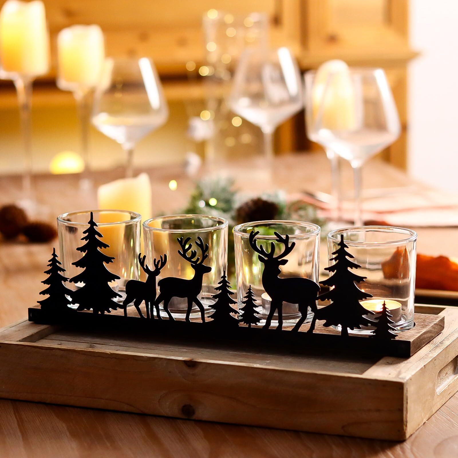 Tealight Votive Candle Holders Set Includes 1 Wooden Candle Tray & 4 Glass Candle Holders Christmas Mantel Table Centerpieces Decoration Indoor Christmas Table Decor: This set of 4 Christmas glass candle holders embodies a festive design that adds a radiant charm to any chrismas space. Featuring a wooden tray and elegant glass holders, they are perfect as Christmas table decorations for family gatherings, creating a cozy and warm winter atmosphere Holiday Votive Candle Holders: Designed to hold standard votive, LED, or tealight candles, each votive holder transforms your space into a holiday wonderland. Place them together as a table centerpiece or use them individually on mantels, shelves, or side tables to add a sparkling Christmas touch Versatile Holiday DIY Decor: The clear glass candle holder allows endless customization options for a personal holiday touch. Fill each candle jar with Christmas elements—think mini ornaments, pine sprigs, or even faux snow—to create a one-of-a-kind Christmas display High-Quality Craftsmanship: Combining a sturdy wood and metal tray with durable, heat-resistant glass candle holders, this Christmas votive candle holder set is built to withstand holiday festivities. Its quality construction ensures stability and a lasting seasonal charm that can be enjoyed year after year Candle Holder for All Occasions: Ideal for winter weddings, holiday dinners, or cozy gatherings, this votive candle holder set adds elegance to every occasion. Use it as a table centerpiece or festive decor piece, brightening your space with a warm holiday glow Christmas Home Decor: Transform your home into a winter wonderland with these glass candle holders. Perfect for Christmas holiday decor, they look stunning on mantels, shelves, or coffee tables, bringing a cozy, festive ambiance to your home with a mix of green, red accents. Christmas Table Centerpiece: Make your holiday table shine with these glass votive holders as a centerpiece. Arrange them in the center of your dining table for family dinners or festive parties, creating a warm and sophisticated atmosphere. Perfect for Winter Events: These versatile votive holders are ideal for any holiday gathering, from Christmas dinners to New Year celebrations. Their glowing light and festive look make them an elegant addition to any special event. Outdoor Christmas Decor: These candle holders can also be used outdoors, adding charm to patios, balconies, or gardens. With a sturdy wooden tray and heat-resistant glass, this set is perfect for outdoor holiday gatherings, creating a magical glow. Thoughtful Christmas Gift: This Christmas candle holder set makes a delightful Christmas gift for friends and family. With a timeless design and quality materials, it's the perfect choice for a holiday gift, housewarming, or a cherished keepsake for the Christmas season. * Order Cancellation Policy ** You can return a product for up to 30 days from the date you purchased it. 1. The seller reserves the right to cancel the special case only due to eBay cancellation fee. 2. The decision of seller is the final. 3. The seller will respond to the cancellation request within 2 business days. Please wait for the result of cancellation. 4. In case the cancellation is not completed by some reasons, the buyer can follow the options below to get the refund. 4.1 The buyer can reject the item when it arrives. 4.2 The buyer can send the item back to the seller within 30 days If the buyer receives item (USA Shipment ONLY). The seller will provide the FREE return label to the buyer when the buyer opens " Return Item" case on eBay by using the reason as "Change my mind" ONLY. 5. When buyer has placed the order. The order will be processed and completed by automatic warehouse system within 5 minutes. In case that buyer sends the cancellation request after 5 minutes of placing the order, the request will be rejected. **Sending direct message to cancel the order is not allowed for every case.* Return Policy For the return case - If buyer would like to return the items for refund or replacement, please CONTACT SELLER to receive the free return label from seller. The refund or replacement will be processed with the tracking number of return label which is provided by seller only. The other ways of return which are not approved by seller will not be processed for the refund or replacement. SHIPPING Domestic Buyers - We ship within 3 business days of payment, usually sooner - We offer FREE shipping on all orders! - We only ship to the lower 48 states, no APO/FPO addresses or PO Boxes allowed - We have confidence in our products, but if you are not fully satisfied please contact us within 30 days of purchase and you will get full refund. International buyers – please note: Import duties, taxes, and charges aren't included in the item price or postage cost. These charges are the buyer's responsibility. - Please check with your country's customs office to determine what these additional costs will be prior to bidding or buying.