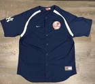 Embrace your New York Yankees fandom with this striking blue Nike jersey. A must-have for any die-hard MLB enthusiast, the jersey is designed for comfort and style, featuring a classic button-up front that captures the spirit of America's favorite pastime. Tailored to fit size XL, it's a versatile addition to any fan's wardrobe, suitable for game days or casual outings. Crafted to meet the quality standards of both Nike and the New York Yankees, this jersey is a testament to the timeless appeal of Major League Baseball. With its durable fabric and iconic team logo, it's an essential piece of fan apparel that brings a touch of Yankee pride to any setting.
