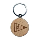 Team Sport Flag Engraved Wood Round Keychain Tag Charm