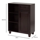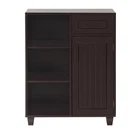 Upgrade your home storage while adding classic decor with the Teamson Home Catalina Wooden Floor Cabinet with Storage Drawer. This decorative cabinet features a sleek espresso finish and a crown molded door for a beautiful addition to your space. The included top drawer, 3 open shelves, and inner adjustable shelf help to reduce clutter and keep your home tidy. Constructed from durable engineered wood, this floor cabinet is built to provide you with long-lasting organization. Easy, step-by-step instructions and all of the hardware needed for installation are included for quick assembly. Purchase this stylish cabinet alone or with other items from the Catalina collection for a cohesive, updated look. The Teamson Home Catalina Wooden Floor Cabinet with Storage Drawer measures 15.5" x 26" x 34 Teamson Home Catalina Mixed Storage Freestanding Floor Cabinet Features Dark espresso finish with beadboard-paneled doors and wooden pull handles Two exterior adjustable shelves on one side of the cabinet and one interior adjustable shelf inside Constructed from durable engineered wood, less likely to warp, crack, or rot to provide long-lasting use Easy step-by-step instructions and all of the hardware needed for installation included Dimensions: 15.51" L x 25.98" W x 34.29" H SKU:7718 The Teamson Home Catalina Wooden Mixed Storage Freestanding Floor Cabinet features a sleek espresso finish with a beadboard paneled door and crown molding for a timeless addition to your space. Two open exterior adjustable shelves flank the left side of the cabinet while storage is hidden away on the right in a top drawer and small cabinet with an adjustable shelf inside. Constructed from durable engineered wood, this modern-styled floor cabinet provides you with long-lasting organization.