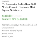 TechnoMarine Ladies Watch features a chic and classic style with a pink rose gold case and ceramic band. The diamond bezel adds a touch of glamour to the white ceramic dial with day/date function. This pre-owned wristwatch is water-resistant up to 50m (5ATM) and comes with its original box and booklet. The watch is powered by a reliable quartz movement and displays time on an analog display. It also includes features such as water-resistant and diamond accent. The watch is perfect for women who want a stylish and functional timepiece. This is not new, shoes signs of wear to the ceramic and metal. Missing a piece of the ceramic on Closure see pictures. Also needing a battery. This is truly a great watch, not many of this on eBay for this price Snag this great deal. No box included but will be shipped appropriately. Please note I am a veteran seller of 17 years under (TheChic_SheShed) I opened this account to move my jewelry to, as I closed my etsy shop. So please do not mind the little to no feedback. Check out my other account.