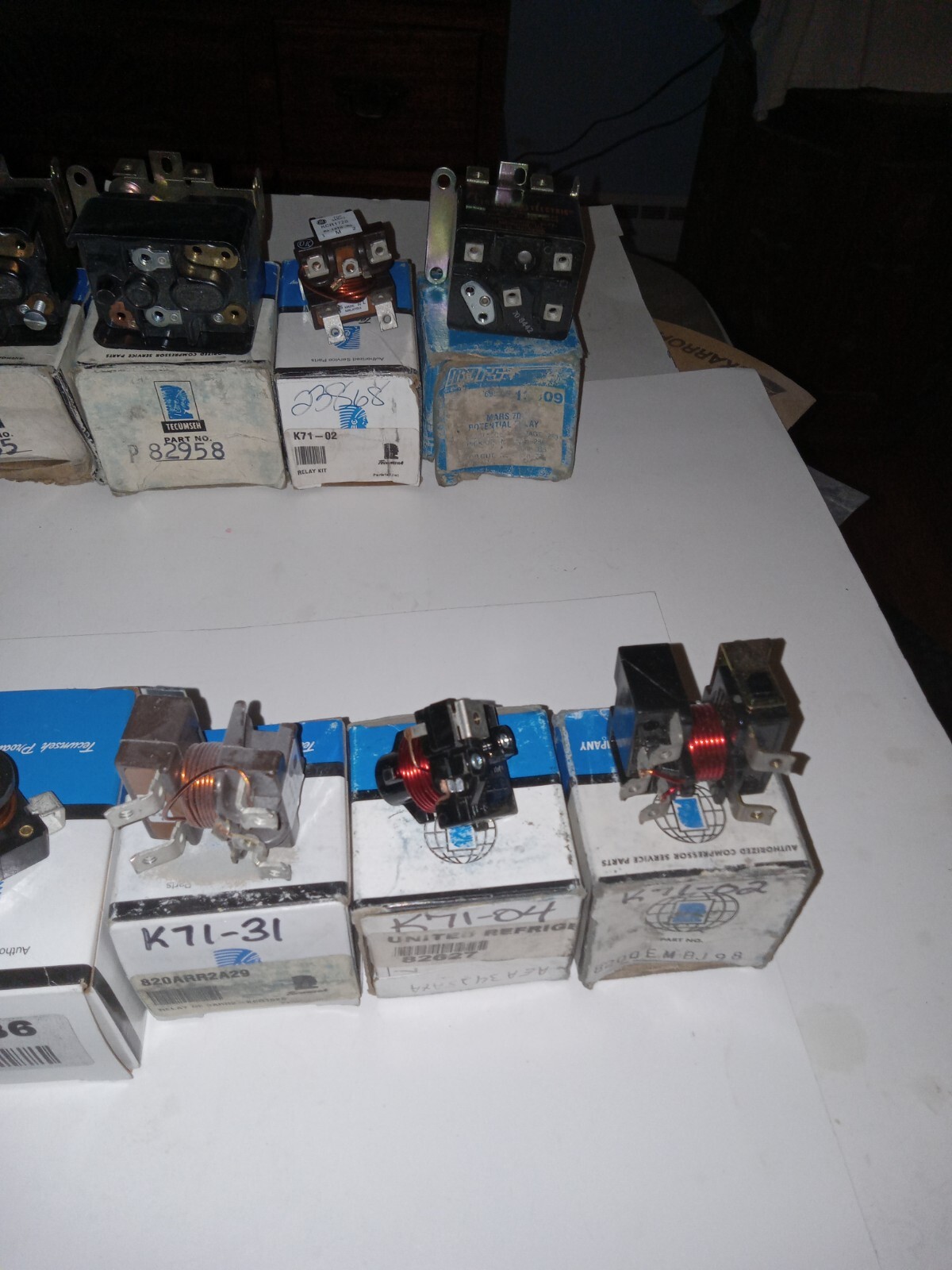 Tecumseh a/c refrigeration compressor relay parts lot, mostly nos, possibly some used, approximately 50 pieces. For parts only, as far as I can see, these appear to be NOS but some may be used? missing hardware, instructions, etc. Some parts may be in the wrong box, may be a different design than other similar items with same part #'s - Some of the plastic parts may be chipped or broken. - One large Tecumseh package has been emptied into another package with the same part # to save space (photo 9) - A great deal if you work in the industry -