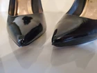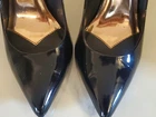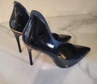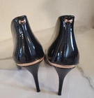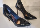 These classic and elegant Ted Baker London stiletto heels are made of black patent leather with distinctive rose gold-toned accents on the heel and bottom of the shoe. They are a European size 39, which corresponds to a US women's size 8.5 according to the brand's sizing charts. Condition: Great pre-owned condition. The heels have been gently used and are well-maintained. Please note, as pictured in the detailed photos, there are some minor scratches on one of the heels. Features: Classic pointed-toe design Glossy black patent leather Rose gold-toned detailing Stiletto heel Perfect for special occasions, professional wear, or a night out. Sizing: EU Size: 39 US Size: 8.5 Heel height: Approximately 4 inches For a perfect fit, please refer to the provided measurements and pictures, and consider checking a Ted Baker size guide for comparison.