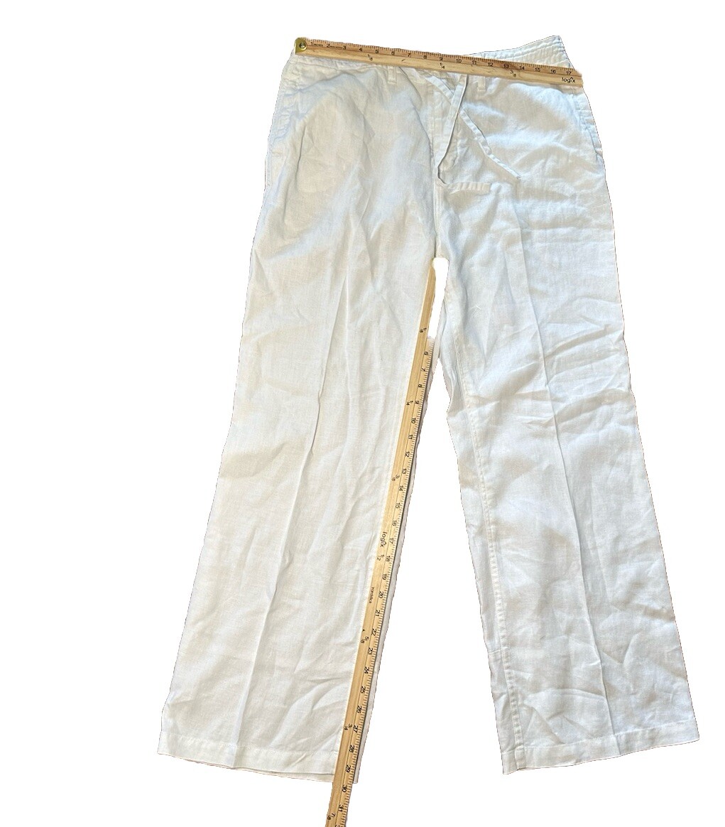 Elevate your wardrobe with these stylish Ted Baker pants. Crafted from 100% linen, these wide-leg trousers are perfect for any occasion, whether it's a casual day out or a formal business meeting. The drawstring and button closure ensure a comfortable fit, while the machine washable fabric makes them easy to care for. These pants come in a beautiful white color and are designed with a regular fit for women. They are suitable for summer, fall, and spring seasons and have been manufactured in China. The pants are from the Ted Baker brand, known for their quality and style. Make a statement with these pants, perfect for any fashion-forward woman.