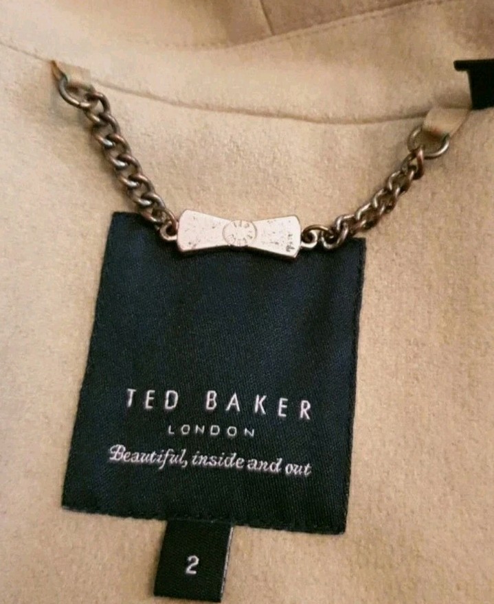 This Ted Baker coat is a stylish and elegant choice for women in size 10 (2). Made from a luxurious combination of wool and cashmere, it features a classic trench coat design in a sophisticated camel colour. With long sleeves, a button closure, and a belted waist, this jacket is perfect for various occasions including travel, parties, casual outings, formal events, workwear, and business meetings. The classic fit and timeless style make it a versatile option for the autumn, winter, and spring seasons. Complete with pockets and a polyester lining, this designer piece exudes quality and sophistication. Used and has some bobbling, scratches on metal parts and inside the pocket needs stitching up.