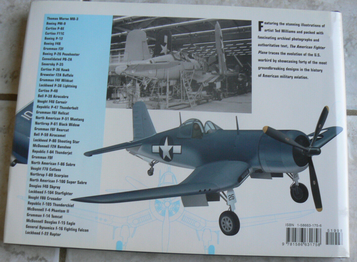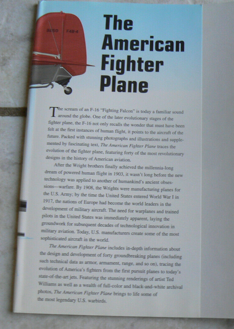 The American Fighter Plane Illustrations by Ted Williams Text by Amy E. Williams MetroBooks, 2002 From the Hellcats in the Pacific and the Mustangs in Europe during World War II to the F-4 Phantom in Vietnam and the F-16 in the Gulf War, American fighter planes are the stuff of legends. This book looks at 40 of the most famous ones, from the Thomas-Morse MB-3 that was designed in 1919 to the futuristic stealth F-22 Raptor. The author provides detailed information on each vehicle, including its design history, its capabilities and weaknesses, where and when it was used in combat, and how successful it was as a fighter aircraft. The text is well written and easy to read, although it contains some military jargon. The book is profusely illustrated with black-and-white (and some color) contemporary photographs of the planes from a variety of vantage points, including on the assembly line, inside the cockpit, and in combat deployments throughout the world. Additionally, there is a full-page original painting of each aircraft, and many of the chapters also have paintings of the patches worn by the pilots to identify their squadron. This visually appealing work will attract casual readers and is packed with useful material This 176-page hardcover is in brand new condition with all pages crisp, clean, and sturdily bound; even the dust jacket is nice and smooth. You won't be disappointed! I'm listing MANY other books/items. I'm happy to combine shipping when possible! ~~~~~~~~~~~~~~ I normally mail ON the day I receive payment if it's received before 1 p.m. central time, and the next day if it's later than 1. Please take a look at my other listings; I'll be listing many school books (and others); I'm happy to combine shipping. Before you pay, put items in your cart, then "request total from seller". I will then weigh them together and send an invoice with a combined shipping price. All items coming from a smoke-free, pet-free home! Thanks so much for your time! Before leaving your feedback, if for any reason you feel I did not deserve or earn 5 stars in each category, please let me have the opportunity to make it right. I want every transaction to be 5-star worthy! Thanks so much! :)