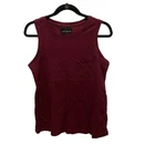 This Marianne brand T-shirt is a versatile addition to your wardrobe. The sleeveless top features a crew neck and a pocket. It comes in a burgundy dark red color and is made of 100% cotton fabric, which makes it comfortable to wear in any season. The shirt is machine washable, making it easy to care for. The minimalist and classic theme of the shirt makes it suitable for travel, casual outings, and workwear. It is available in sizes XS, S, and M, and is a regular fit for women.