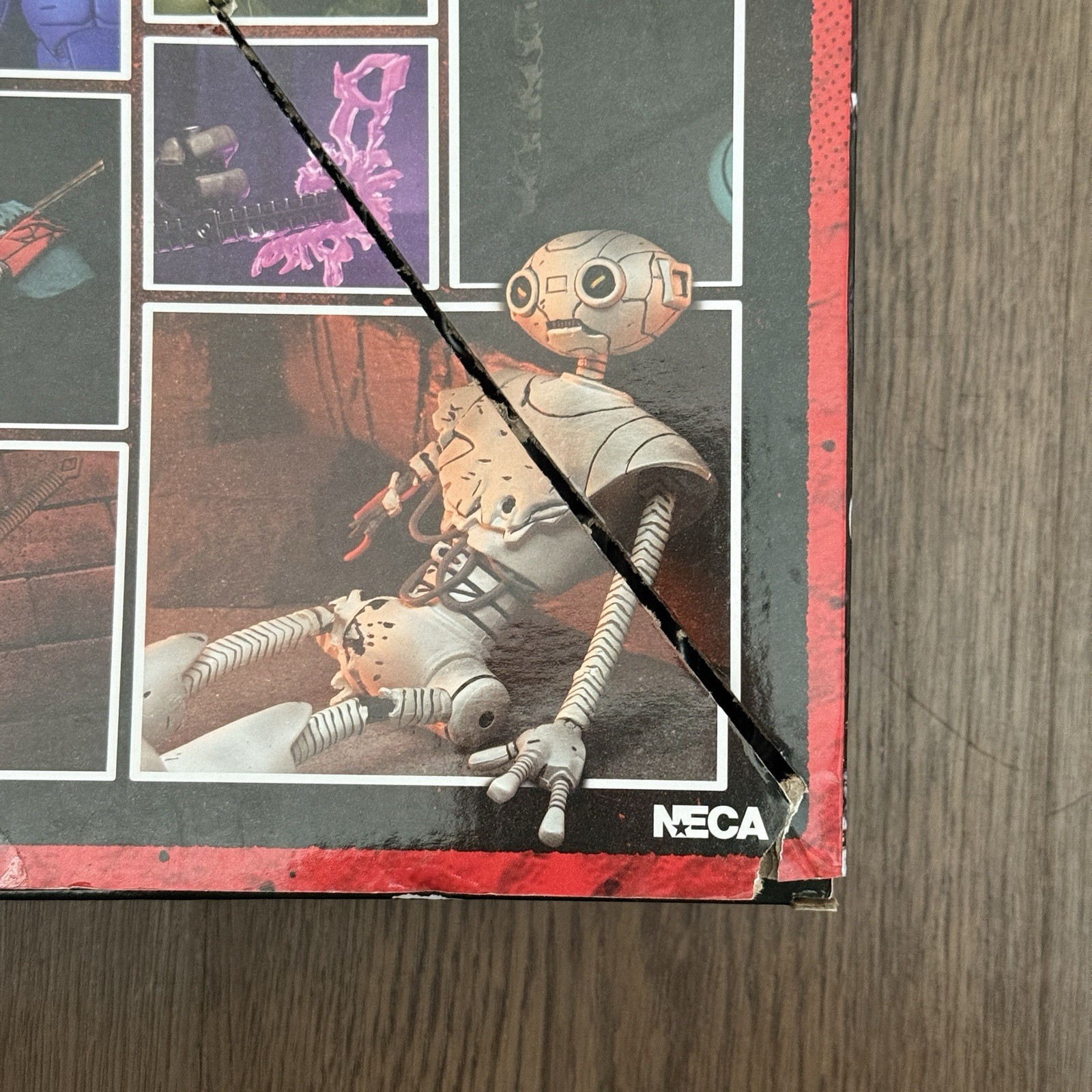 New damaged box. From the Teenage Mutant Ninja Turtles comic book series, The Last Ronin! In a future NYC far different than the one we know today, a lone surviving Turtle goes on a seemingly hopeless mission to obtain justice for his fallen family and friends. Add to your TMNT collection and build amazing scenes with this deluxe accessory set from NECA, featuring several scene-specific items and more from the best-selling comic book! There are endless world building possibilities with the Bleecker and Sullivan Street sign; plus, the security camera plugs into NECA's Street Scene Diorama (not included). This accessory set comes with a bandaged Ronin head that is interchangeable with previous Ronin action figures (not included), as well as a tactical vest for the SYNJA Patrol Bot figure (not included) and two new heads: SYNJA Officer and battle-damaged Patrol Bot. Other items include energy effects for the techno tonfa, translucent smoke cloud and three smoke bombs for the perfect ninja vanish, battle-damaged Fugitoid figure, Splinter's diary turned to the "No Peace" page, Hiroto hologram, weapons, and more! Comes in collector-friendly packaging with original art by The Last Ronin artist Ben Bishop.
