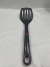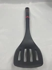 The Tefal Ingenio Slotted Spatula is a black cooking spatula made of heat-resistant nylon material with a resin handle. It is a versatile kitchen tool ideal for various cooking tasks. Manufactured by T-fal under the brand Tefal, this spatula is a single piece and does not require batteries. Its slotted design makes it suitable for draining excess liquids while cooking. Perfect for everyday use in the kitchen, the Tefal Ingenio Slotted Spatula is a practical addition to any home cook's utensil collection.