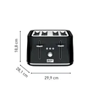 Tefal Loft 4-Slot Toaster, 7 Browning Levels, Defrost, Large, Black Toaster Description Features: FOUR-SLICE CAPACITY: Toast up to 4 slices at once, ideal for busy mornings, family breakfasts, or hosting brunches with ease and speed. CUSTOMISABLE BROWNING: Select from 7 browning levels to get your perfect toast shade every time, from lightly golden to deep, crisp brown. WIDE SLOTS: fits a variety of bread types and sizes, from bagels and artisan breads to thick slices, making every breakfast or brunch easy. HIGH-LIFT LEVER: safely lift smaller items such as English muffins or crumpets, preventing burns and making removal quick and effortless every time. REMOVABLE CRUMB TRAY: collects crumbs and debris for quick, effortless cleanup, keeping your countertop tidy and making maintenance simple every time. CANCEL, REHEAT & DEFROST FUNCTIONS: convenient buttons let you cancel mid-cycle, quickly reheat or defrost frozen bread with ease. EVEN TOASTING: 1700 W power ensures consistent, even browning on both sides of your bread slices for perfectly toasted results every time. COMPACT & DURABLE: crafted from high-quality plastic, this toaster is built to last while saving space, making it perfect for any kitchen counter. STYLISH DESIGN: Seymourpowell-designed kettle features unique fluting and a glossy finish, inspired by British ceramics for a standout kitchen look. Product Details: