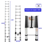 Telescopic Ladder 4.4m Aluminum Multi-purpose Home Heavy Duty 150kg EN131 14.5FT ※ 4.4 m straight telescopic ladder: --4.4 m (14ft5) Telescopic climbing ladder: --Number of ladder steps: 15 --Step interval: 30 cm --Net weight: approximately 12kg -Approximate size: 92cm (folded height); 4.4 m (unfolded height) ★Max Loading: 150Kg ★Manufactured to the highest standard, this ladder conforms to EN131 standards and is CE registered. ★Foldable design, convenient to use and easy to carry around. ★The ladder is highly versatile and can be used for many tasks, no matter at home or work. Invaluable around the house and work place. --Easily stored in everywhere when ladder is closed. --Quickly and easily extends rung by rung to the required height. --Safe and compact---- The ladder comes with high quality rubber feet for extra stability and grip and stable locking key between two neighbouring steps to avoid bumping and friction. --Constructed from high quality and polished aluminium. --Lightweight yet durable and compact for easy storage and transportation. --Black anti-slip rubber sleeve on the bottom of ladder step and stable locking key between two neighboring steps to avoid bumping and friction --Highly versatile and can be used for many tasks around the home as well as for trade use. --Slight deviation may occur during measurement, please take care and thanks for your understanding --High quality foldable telescopic style ladder. HOW TO USE: 1. When you are closing the ladder, please DO NOT place any parts of your body within the rung, especially your hands and fingers. 2. If you want to use several steps as a short ladder, please open the steps from the top and keep the bottom steps folded. Payment Delivery details Terms of sales Welcome Contact us Payment 1.Please check the item after you receive it,please keep us posted if you have any confusion or porblems about your order .We will give you reply and best solution within 1 working day . 2. Please don't leave any neutral/negative feedback or open a case when you have problems with our product , we promise to try our best to help and not let your interest be damaged. 3.If you are satisfied with our product,please leave us a 5 stars positive feedback and we will do the same for you. Delivery details Sincerely thank you for choosing us, we suggest you reading our shipping terms and conditions. 1.All items are shipped within 1-2 business days after we confirm your payment and your shipping address. 2.We only ship our items to the areas that our logistics provider covers. 3.To ensure you receive item safely, please offer the concrete and complete shipping address 4.Please keep the consistency of the address from Paypal and eBay. 5.Sometimes your order may be impacted by extreme bad weather, strikes or other unexpected events. 6.If there are any problems with your order, including late delivery or being lost, please do not hesitate to contact us. We are happy to offer solutions to your inquiries. Terms of sales 1.We accept PayPal only! 2.Please keep the consistency of the address from Paypal and eBay. 3.Payment must be received within 3 days since you won the item, or eBay will launch Unpaid Reminder Against you. Welcome Contact us If you have any question,Please no hesitation to contact us via ebay message, we will reply you within 24 working hours .