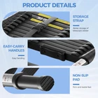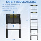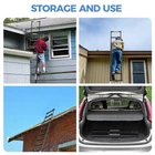 Height And Load Bearing: The MAX height of this telesteps telescoping ladder is 12.6 ft and MIN is 2.8 ft, adjustable for your desired height. Telescopic ladders have a maximum load of 330 lb. Anti-slip and large rubber feet improves stability and safety Sturdy Ladder: This extension ladder is crafted from premium aluminum alloy with sturdy and slip-resistant rungs. The aluminum surface is oxidized, making it resistant to water, rust, and corrosion. Its plastic parts are reinforced with nylon fiber Black Extension Ladder: adjustable ladder passes EN131 testing to keep you safe. The compact ladder can be folded to a minimum size, is convenient to carry, and take up less space Multlpurpose Using:This retractable ladder has a storage strap that keeps the sections in place and a carry handle at the base. Great for attic, RV, home, building maintenance, repairing a roof, installing and repairing street lights, climbing trees Smart lock: A smart lock is installed between each joint of the folding ladder, which can be opened very conveniently and the length can be adjusted as needed