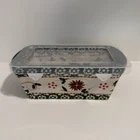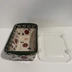 This Temp-Tations By Tara Old World Mini Loaf Pan Set includes a ceramic rectangular pan with a 12 oz capacity. It comes with a plastic cover for storing leftovers. The pan is oven, microwave, and dishwasher safe, making it convenient for baking and reheating. With its multicolor design, this two-piece set is a stylish addition to any kitchen.