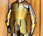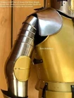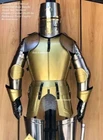 Medieval Knight Wearable Suit Of Armor Crusader Full Body Armor Suit Free Black Base & Iron Stand Shield Is Included With Full Body A rmo r Light Weight Armor & Its fully wearable and comfortably made. Premium quality well made Medieval Knight Suit Of Armor Size : XL Men's Metal : Steel - 20 Gauge Finish: As shown in Picture Full Size reproduction Handcrafted : Steel and Iron construction Weight with wooden base and stand: 25 kg (approx.) Made of high quality Steel & Iron 20 Gauge High Splendid Finishing. Best leather gloves inside. High quality leather straps. With beautiful on front side This Armour suit can be worn or used for Display. Suit Is Fully Wearable Packing and Assembling Details We First Check Armour Suit 2 Time Before Packing So That There Is No Chance Of Any Problem And Damage Or Scratches And Then We Pack It , Little Assemble Requires It Will Not Take That Much Time To Assemble The Armour It So Easy If Any Problem Came We Will Send Video And We Will Help Our Buyer With Everything Little Assembly Required For Suit And Wooden Base We Will Share Video Links For Instruction if You Need Any Help Not Sold as an Antique This is Reproduction Handmade Product Made by Indian Handicraft We supply this armor Suit pre oiled for protection from rust. use this shield as a great Halloween costume please note : this is a hand-made item & slight difference in color and size are possible. We supply this armor pre oiled / greased for protection from rust. you are requested to please wipe this item with soft cotton cloth before start using it. and if you have no use this item then please re-apply simple mobile/lube on this item and pack it in a plastic bag. -Usage : Home Decorative,Desktop Decorative.Table Decorative Collectible Items -Packing : Packing In One Parcels. Corrugated Export Packing