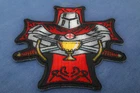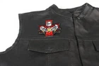 3.4x4 inch. Embroidered Patch with Plastic Iron on Backing. Patch can be sewn on to Leather Vests, Jackets or Chaps. Patch can also be ironed on to Denim Shirts, Hats or Bags. Iron on Patch at 280 Degrees Fahrenheit for 30 Seconds. Ironing on Application is a semi permanent way of attaching patches. Sew on the Patch for Permanent application. Do not iron on patches to Leather or Nylon Materials.