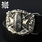 925 Sterling Silver belt buckle " "Templar". The Templar - one of the most famous Christian knightly orders, which was founded in the early 11th century. In addition to military affairs, the Templar had good luck in usury, construction and charity. At the height of their power, the Templar, in addition to a powerful army (up to 20,000 knights, chaplains, armed forces, and servants), had an extensive network of command, castles, and monasteries, playing a key role in medieval Europe. The Templar had permission from the Galician princes to trade salotvin salt. In the XII century. On the site of the modern village of Sredne was built the castle of Frau de Bermagne (1088-1169), the strongest Catholic order of the Templar (temples) in Western Europe. Destroyed, it has survived to our times and is considered one of the main monuments of Transcarpathia. The buckle is cast from solid 925 sterling silver. After casting, each buckle processed manually. After processing the buckle, cover by patina and polishing one more time. For durability and flexibility, the frame of the buckle is made of stainless steel. If you choose belt buckle with leather belt: 1. 100% Top Grain Leather Belt - The belt is made of a solid piece of leather, which means it will serve you for a long time. Belt width : 1.5 inch (3.8cm) or 1.8 inch (4.5cm) wide. 2. Top grain leather belts may have wrinkles, scars, scratches that are inherent characteristics and natural beauty calfskin leather. 3. Adjustable length - Our standard belt length: 47-48 inches (120-125 cm). If you need more length, let us know in the comments! Easy to adjust! Our all belts package has an instruction inside which helps you easily shorten the belt by yourself. The buckle is attached to a leather belt mount, which is connected to a belt with a screw. To shorten the belt should: 1. Unscrew the screw that holds the buckle 2. Cut the excess of skin, according to your size 3. Make a hole for the screw 4. Fasten belt buckle. If you know your belt size in inches, just let us know and we'll shot your belt. The buckle comes complete with a crafted box. Buckle sizes: 2.4"x3.5" (61х89 mm) Buckle weight: 120-130 gr. ( 4.23-4.58 ounce) Made in Ukraine!