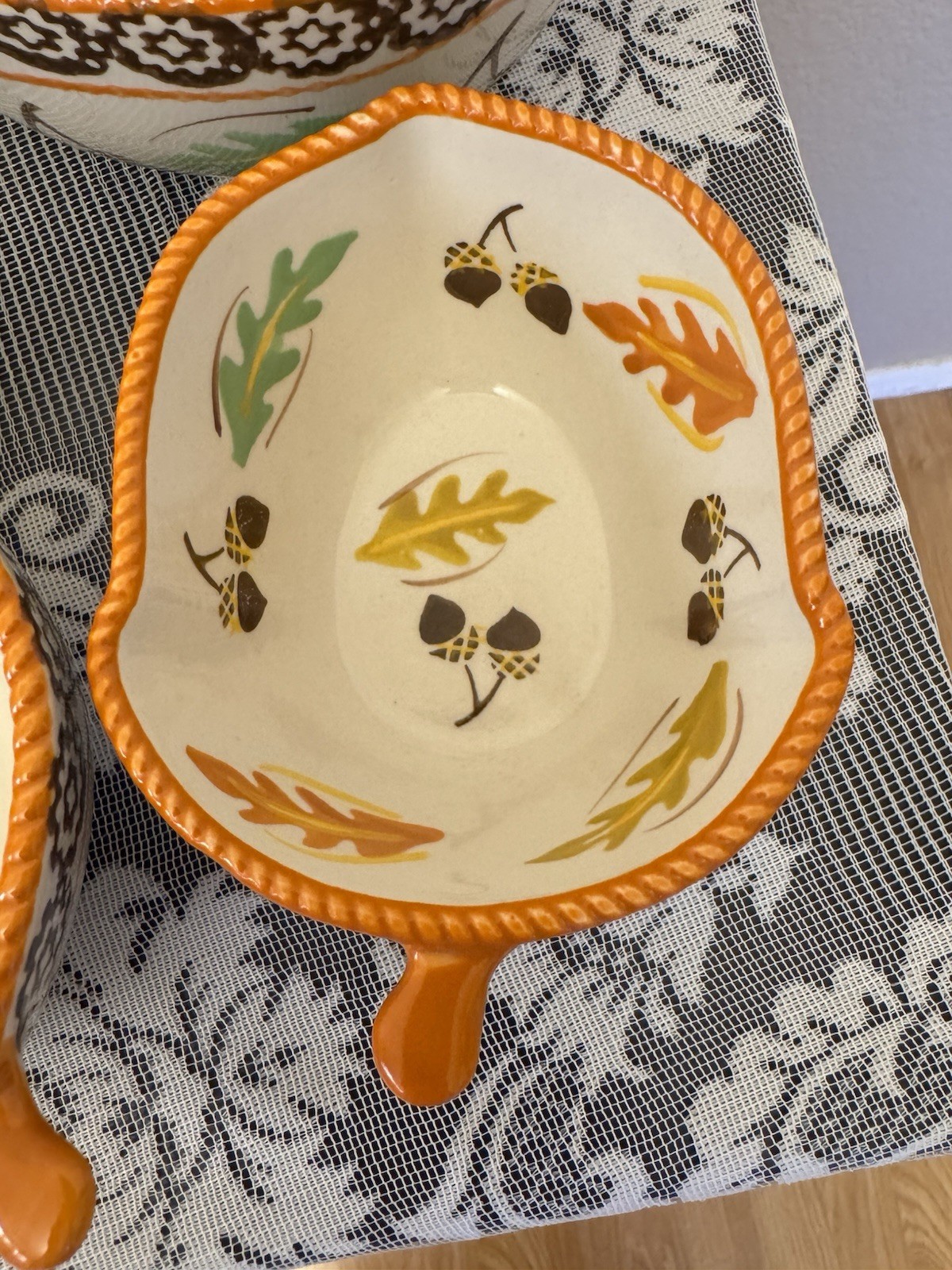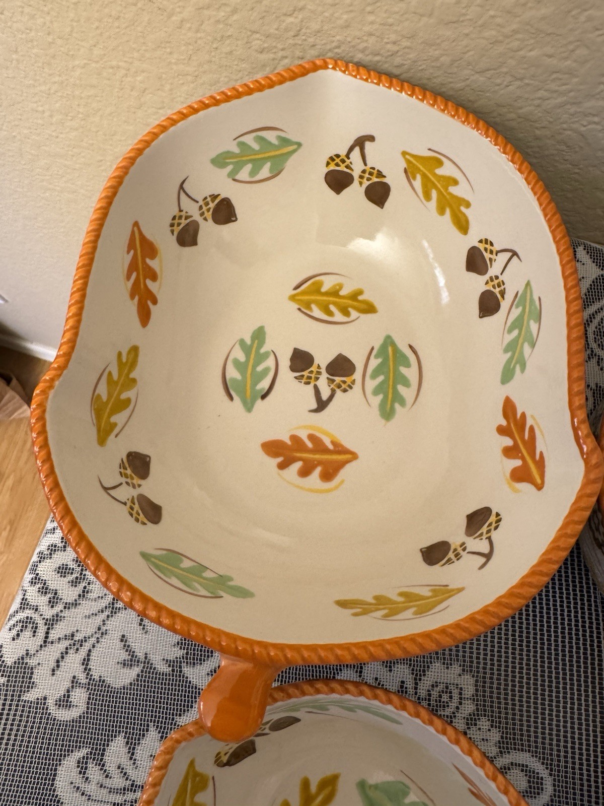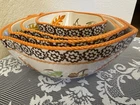 The Temp-tations by Tara Old World Mixing Bowl Set in Leaf & Acorn Autumn design is a charming and functional addition to any kitchen. This 4-piece set features bowls with a 1.5 QT, 1 QT, 0.5 QT, and 8 OZ capacity, perfect for mixing and measuring ingredients. The ceramic material ensures durability, while the warm autumn colors and leaf and acorn pattern add a touch of charm. These bowls are not only stylish but also oven, microwave, and dishwasher safe for convenience in use.