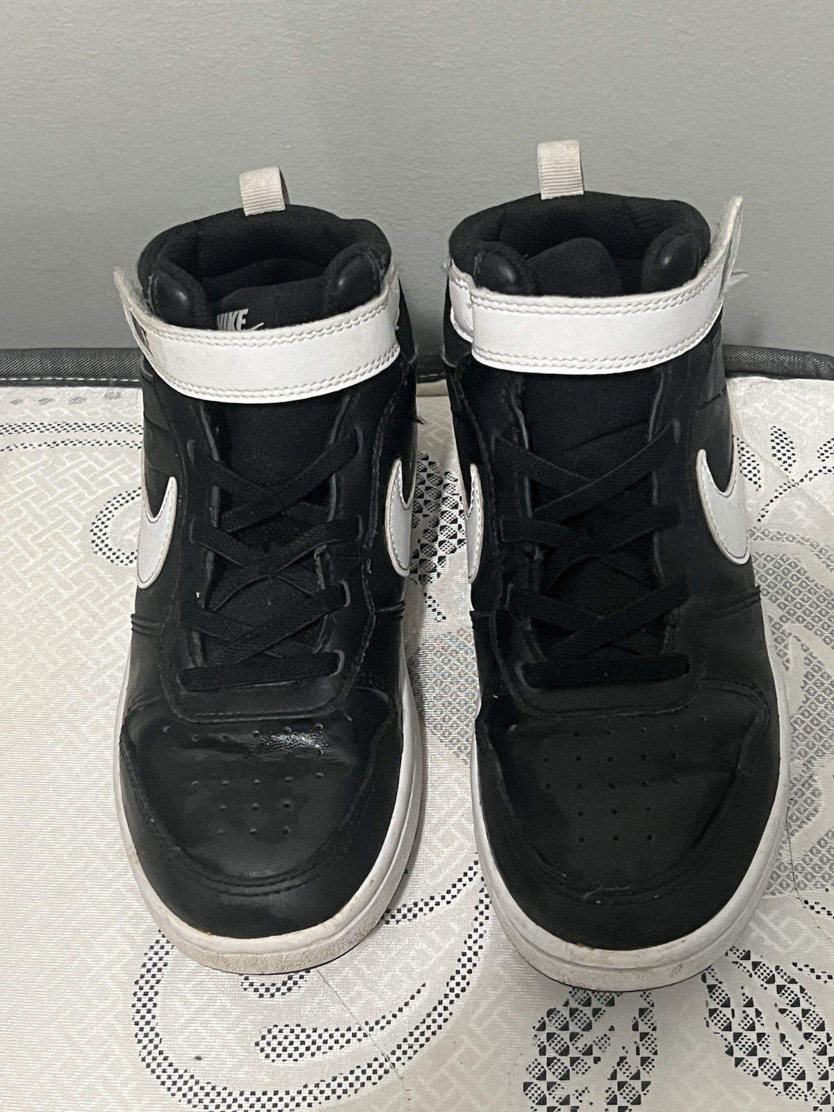 Handmade: No Outsole Material: Rubber UK Shoe Size: 1 Type: Athletic Signed: No Vintage: No Closure: Lace Up Shoe Shaft Style: Low Top Cushioning Level: Moderate Color: Black Features: Comfort Occasion: Casual Cleat Type: Rubber Customized: No Shoe Width: Standard Fabric Type: Blended Fabric US Shoe Size: 1.5 Department: Boys Pattern: Solid Season: Summer, Spring Personalize: No Style: Sneaker Toe Shape: Round Toe Brand: Nike Accents: Logo