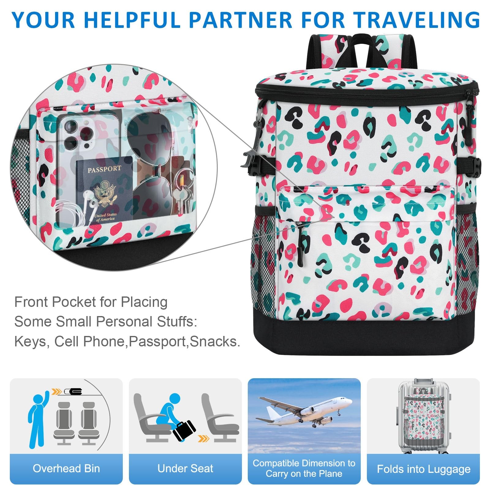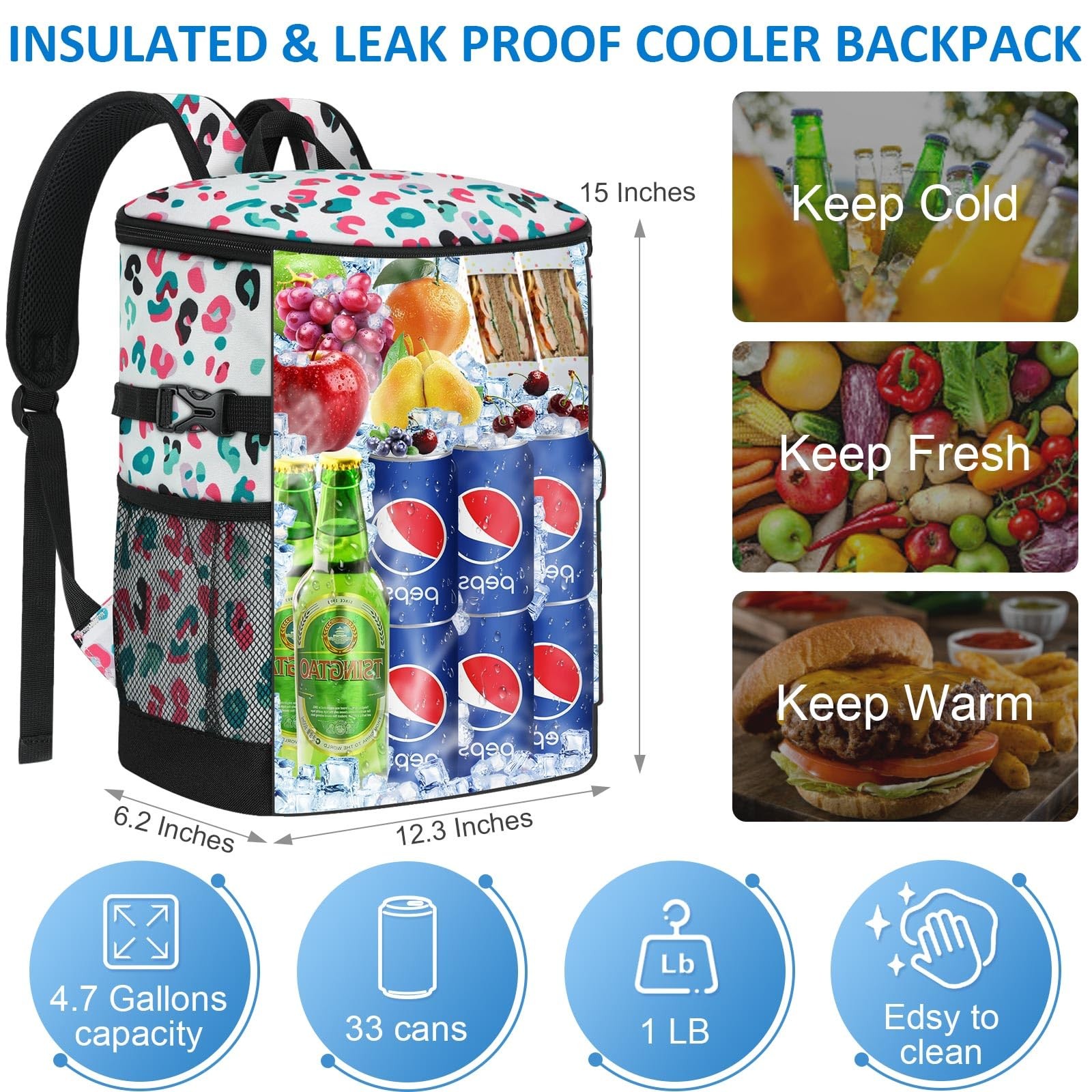 Tenot Cooler Backpack 33 Cans 18L-33 Cans, Blue Leopard Print Description Features: LEAKPROOF COOLER BACKPACK: Tenot lightweight backpack cooler is well insulated enough to keep food cold/hot for up to 16h-24h. There are two dimensions cooler backpacks (18L & 21L) for you selecting.It holds up to 33/40 cans and is lined with a leak-proof liner made of premium quality material that is easy to clean. With our Tenot insulated backpack cooler, your drinks will always stay refreshingly cold EXCELLENT KEEP COOL/WARM: Tenot's insulated cooler backpack are made with premium quality hot seamless pressing PEVA Lining and thickened foam to ensure their keep cool/warm function. This cooler bag are the answer to all your needs for keeping your food warm or cold, whether you're going on a picnic, taking your lunch to work, meeting friends or camping, our soft cooler bag is the answer to your worries, keeping your food fresh and your drinks cold ESSENTIAL OUTDOOR COMPANION: TSA approved dimension cooler backpack for men women. It's an thoughtful solution for people who often by plane or attend outdoor actitives. If you don't need it, just fold it up without taking up any space. Portable cooler bag suitable for varieties of types of outdoor actitives, so you can easily carry it for daily outdoor activities, such as Camping, Hiking, Work, Party, Watching Football/Golf games and so on WIDE APPLICABILITY: The stylish design of this insulated cooler bag is a practical choice for various occasions, These solid color and floral pattern backpack coolers for men women. As you can see, Tenot water cooler backpack in solid colours are suitable for men and soft sided cooler bag with floral prints are suitable for women and young people. The cow and leopard prints in particular may be enjoyed by your children, making it a practical gift for both men and women AMAZING CAPACITY: Tenot cooler backpack has a compact and stylish design but with a large capacity, the main pocket holds 33 cans (18L) of beverages, making it easy to organise all your drinks and snacks; the front pocket holds small items such as paper towels, keys and a mobile phone, and the two mesh pockets on the side hold beer and wine; This waterproof backpack cooler has excellent water resistance and can be a great companion for carrying your lunch, camping or other outdoor activities Product Details: Handling We will ship all orders within 1 business day of payment. Delivery We Do Not Ship Outside of the Continental US. Return Policy All items qualify for returns within 30 days of receipt. Buyer is responsible for return shipping on any item that is not damaged. Feedback We take our reputation seriously, we buy and sell online, so we understand the value of trust. If you are unsatisfied with your order, please contact us and we will work with you to resolve it to your satisfaction.