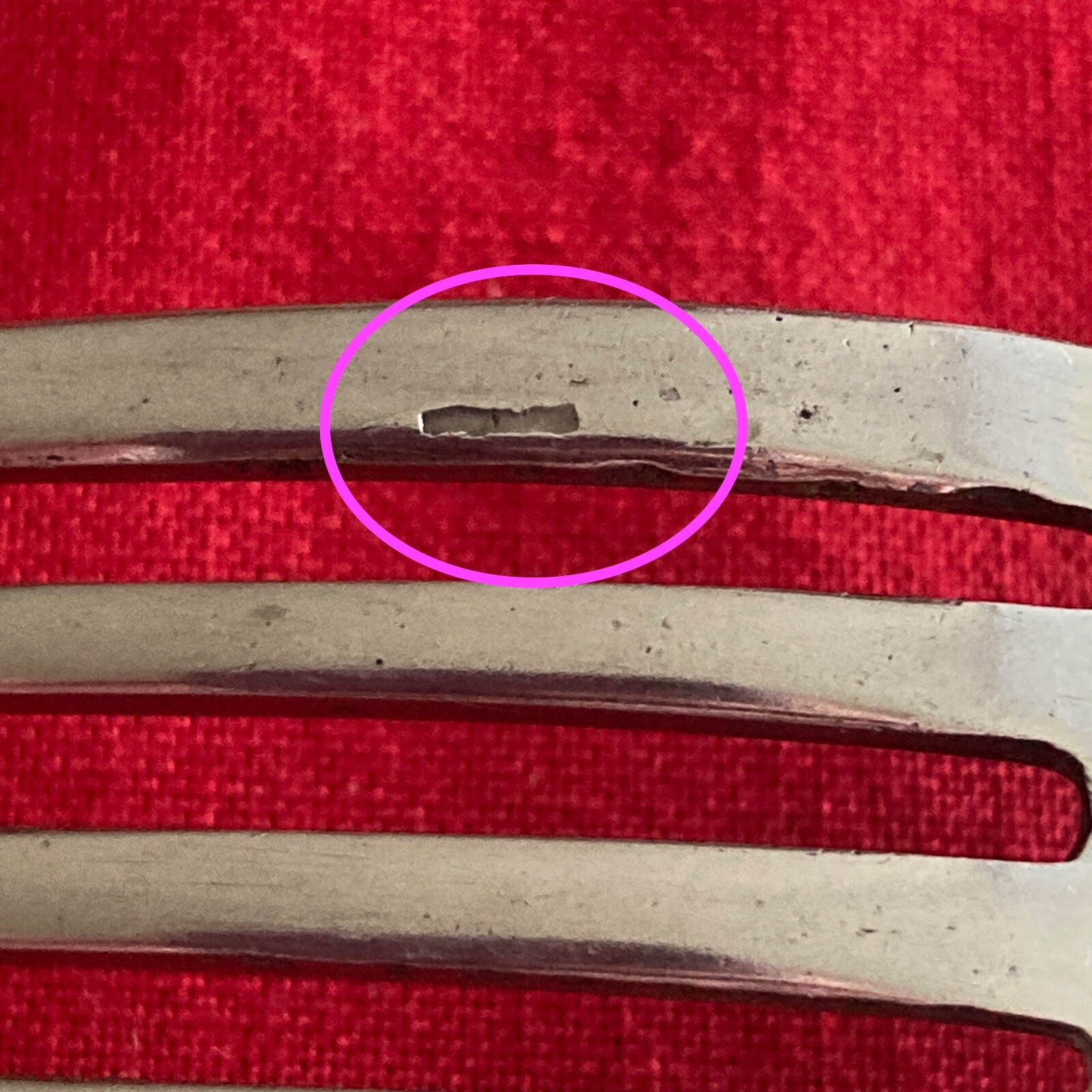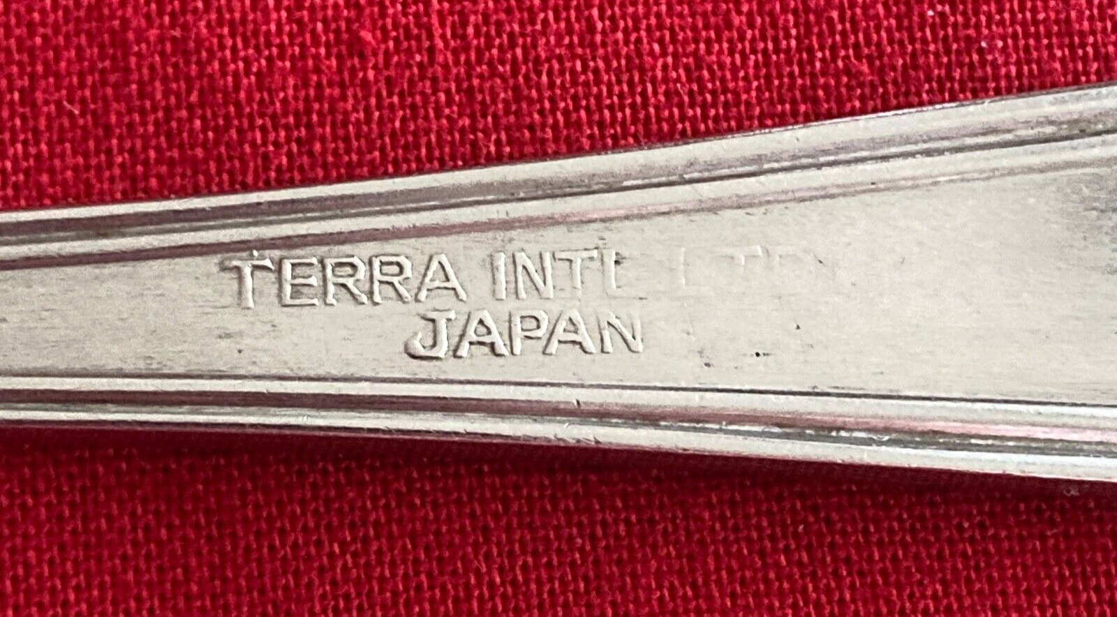 Manufacturer: Terra International Pattern: Unknown - Lines on edges Type: Stainless Steel Piece: Dinner Fork Length: 7"