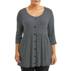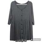 Terra & Sky Women's Plus Size Geo Print Babydoll Button Front Tunic Size 1X Give your wardrobe an instant update with Terra & Sky's Plus Size babydoll tunic top. This top is soft to the touch and will keep you cozy without feeling restrictive. A set of front buttons and a scoopneckline completes the look, while the tunic-length makes it perfect to wear over leggings and tights. Flaunt your curves in outfits designed to take you everywhere. Scoop Neck 3/4 Length Sleeve Button Front Gently worn light wash wear approximate measurements pit to pit 22" length 30"