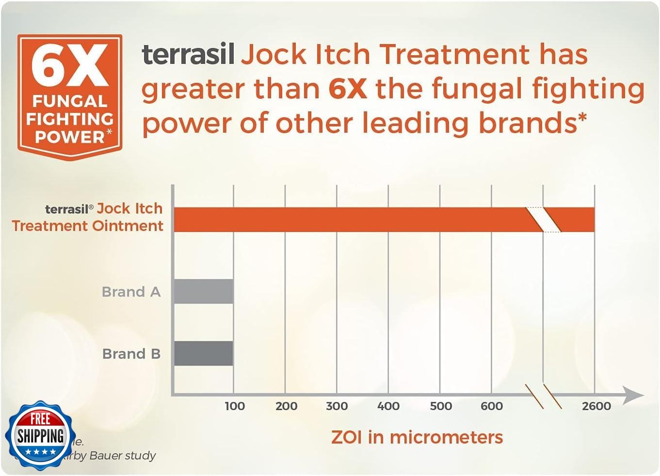 terrasil Jock Itch Antifungal Treatment Extra Strength -Clinically Proven Clotrimazole for Effective Jock Itch Treatment, All-Natural Soothing Care and Fast Relief of Jock Itch (50g) Features POWERFUL JOCK ITCH CREAM: Terrasil Jock Itch Treatment is formulated to quickly treat and heal Jock Itch and associated symptoms. Triple Action: Powerful, Fast and Effective Relief. For men and women for all skin types. CLINICALLY PROVEN EFFECTIVE: Terrasil Jock Itch ointment with 1% Clotrimazole medicine cures most fungal jock itch infections while providing fast soothing relief for burning, itchy, scaly, irritated, and inflamed skin on the groin and inner thighs. For use by men and women. Kills 99.97% of fungus. UNIQUE PATENTED TECHNOLOGY: Only Terrasil Jock Itch Cream contains Activated Minerals, backed by over 20 years of research & development, which together with select ingredients, effectively treats, protects and supports skin healing. NATURAL & SAFE: Terrasil Jock Itch Treatment provides additional therapeutic benefits with natural ingredients including: beeswax, peppermint oil, cotton seed oil, tea tree oil, jojoba seed oil - to moisturize cracking, scaling and damaged skin with soothing relief from itching, burning and soreness. Terrasil is free of parabens, alcohols, dyes, fragrances and steroids. Formulated for even the most sensitive skin EXCEPTIONAL QUALITY FOR POWERFUL RESULTS: Terrasil is formulated with the finest ingredients and made in the USA to the highest quality manufacturing standards. FSA & HSA Approved Shipping Free & Fast Shipping: We offer free shipping to most of the USA with a normal delivery time of 3-7 days. However, due to the current situation, additional delivery time (up to 3 weeks) may be required for some items. Alternative Carriers: We may use alternative carriers (e.g., USPS, FedEx, UPS) to ensure your package arrives safely and on time. Due to the use of multiple carriers, we are unable to provide a tracking number automatically. Handling Time: Orders are processed and shipped within 1-2 business days of receiving cleared payment. Shipping Restrictions: Shipping to Alaska, Hawaii, Puerto Rico, Guam, and other US territories may incur shipping charges or delivery restrictions. Please contact us before ordering, or your order can be refunded/cancelled. State Restrictions: Certain items may not be shipped to California due to state regulations. Contact for Tracking Updates: If you require tracking updates or have any concerns about the delivery of your order, please feel free to contact us, and we will be happy to assist you. Return Policy 30-Day Hassle-Free Returns: If you are not completely satisfied with your purchase, you can return the item for free within 30 days of receiving it for a full refund or exchange. Easy Return Process: Contact us, and we will provide you with a prepaid return shipping label and detailed instructions. No Restocking Fee: There are no restocking fees for returns. However, the buyer is responsible for return shipping costs if the return is not due to a seller"s error. Refund Processing: Refunds will be processed within 1 business day of receiving the returned item in its original condition. Feedback Your feedback is extremely important to us. We strive to provide the best products and customer service possible. If you are satisfied with your purchase, please take a moment to leave us a positive review. If you have any concerns or issues with your order, please contact us before leaving negative feedback. We are committed to resolving any problems and ensuring your satisfaction. Contact Us If you have any questions or concerns, please feel free to reach out to our customer support team. You can contact us through the eBay messaging system. We are available Monday to Friday, 9:00 am to 5:00 pm EST, and we will do our best to respond to your inquiry within 24 hours. Thank you for supporting our small family business!