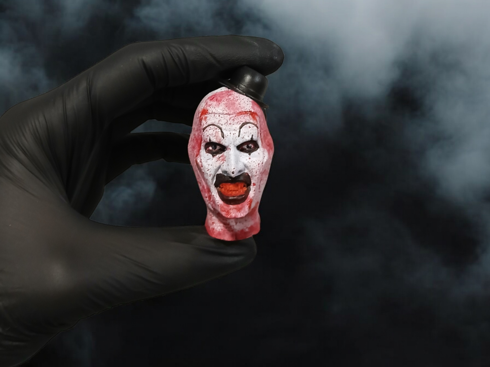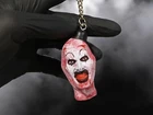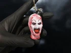 Terrifier keychain ; A unique collectible for horror lovers... 4K+ resin printing Terrifier head keychain 3D Resin printed and hand painted Terrifier keychain, bag accessory, backpack, car mirror ornament ,car decor etc. can be used for purposes. The bloody version of the Art the Clown Terrifier keychain is hand painted, so there may be differences from the visual. * My products are handmade and hand painted ** I make the figures with the best care *** Do not hesitate to contact us for any kind of customization