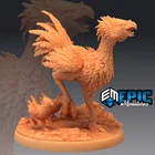 Welcome to the Workshop! Need a surprise for your party? Something that can put up a fight and make them work (and maybe squirm a bit) for that loot? Just need some villainous creatures in your life? We can help with that, and we won’t judge you for how harsh you are to those adventurers! Pose B Mount is 52mm tall, 52mm long, and 32mm wide. Pose D Running comes with the pictured base and 2 chicks. Optional base Dungeon is not currently available in the 2in (50mm) size for large creatures . Other bases we have listed can be swapped out if you prefer, but not all of them are available in larger sizes from the manufacturer. The model will come in dark grayish blue premium resin, but unpainted and not primed, as well as unassembled. If a bit is pictured in orange in the photo above, it’s included. In some of the photos we’ve taken ourselves a base may be attached solely to make the model stand up for it’s photoshoot. These minis are scaled for standard 28mm and will fit right in with most commercially available models you may already have in your party. About those bases. These models are printed and shipped as created by the designer. Some models come from them with base toppers or rocky bits and such to fit the pose, like if it’s got it’s foot up on a stone in front of it. That will be included, and the best base for those will be a flat base. The toppers are smaller in diameter than the base, and sit on top. The bases are also 3D printed, and our default shape is round. If you would prefer an oval or a square, or larger than standard, please drop a note in the Personalization box. We’d also be happy to “mix and match” base types if you go for the All Three discounted option. **Some assembly may be required** Larger models may need to be assembled when you get them. We’ll print them up, test fit them, and pack them as they are safely in pieces. Tank and I spent a lot of time finding the perfect resin to maintain both detail retention and durability for normal gaming situations, and then some. We’ve settled on a mixed resin that gives amazing detail and has just enough flexibility. If you receive your order with any broken bits, missing bits, misshapen bits, damage or holes, we’ll replace it free if you let us know within a few days of receipt. Some light sanding may be visible especially on the bottoms, but we use 3000 grit sandpaper to minimize that. It is, however just the nature of the technology. Sometimes the supports leave a little bit there and we try to remove it as cleanly as possible. If you do find a nub of one on a model, they can removed just like you would remove mould lines or sprue connections from the commercial injection moulded stuff out there. Some models are posed with the sword tip down as If it is stuck in the ground. These will have a flat tip, it’s not broken. Please bear that in mind when ordering. Your model will be printed when ordered in the turn the order was received, normally within a few business days, and shipped via USPS. We’ll let you know when the deed has been done and when it’s on it’s way. How long it takes after that is in the carrier’s hands. The legal stuff: This listing is for a physical object, a printed version of the model. No electronic files or printable elements will be sold or delivered, ever. Tank’s Workshop is licensed to sell Epic Miniatures printed models. Check them out on MyMiniFactory or on Patreon at: https://www.patreon.com/epic_miniatures/ Tank’s Workshop is licensed to sell Asgard Rising printed models. Check them out on MyMiniFactory or on Patreon at: https://www.patreon.com/asgardrising/