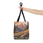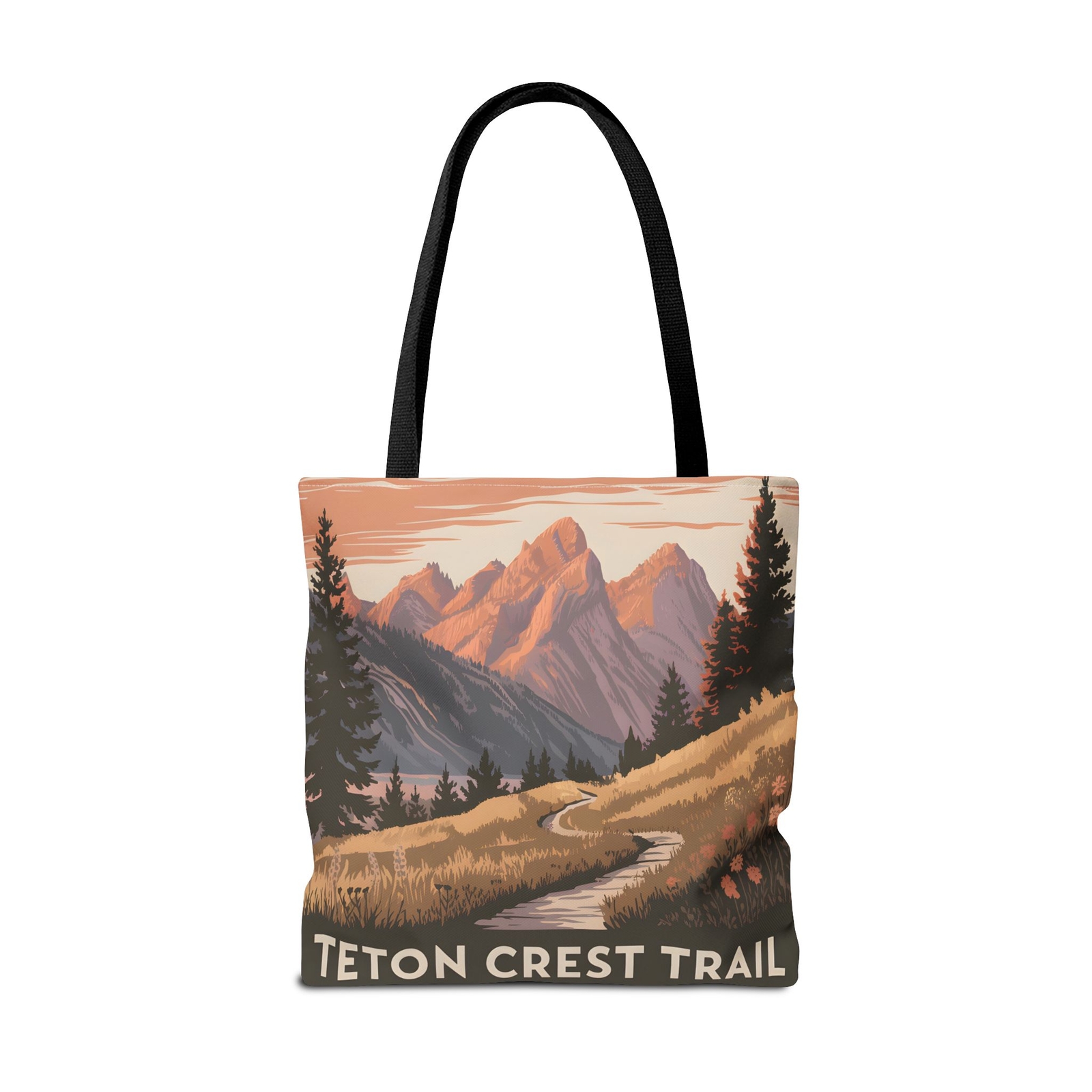 Elevate your outdoor adventures with our Teton Crest Trail All Over Print Tote Bag! Crafted for nature enthusiasts, this spacious tote features vibrant illustrations inspired by the breathtaking landscapes of the Teton Crest Trail. Made from durable materials, it’s perfect for carrying your essentials on hikes, picnics, or travels. Embrace your love for nature while showcasing your adventurous spirit. Add functional perks to an already great design and you get a staple for everyday use. With its interior zippered pocket for added safety, and the adjustable straps for extra comfort, this tote bag has it all. 100% Spun Polyester Available in two sizes: 13''x13'' and 18x18'' Adjustable strap Black interior lining and inner pocket Assembled in the USA from globally sourced parts 13" × 13'' 18" × 18'' Height, in 13.00 18.00 Length, in 13.00 18.00 Width, in 3.00 3.00 Handle length, in 28.74 28.74 Handle width, in 1.00 1.00