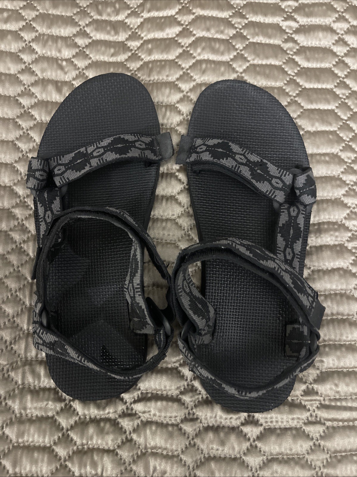 The Teva Men’s Size 8 black hiking sandal is a versatile and durable option for outdoor activities. With an adjustable Velcro strap and cushioned sole, these athletic sandals provide comfort and support for water-based activities or general use. The black color and solid pattern make them stylish for casual occasions, while the nylon upper material and fabric lining ensure durability and breathability. Perfect for the adult man looking for a reliable and trendy footwear choice for outdoor adventures.