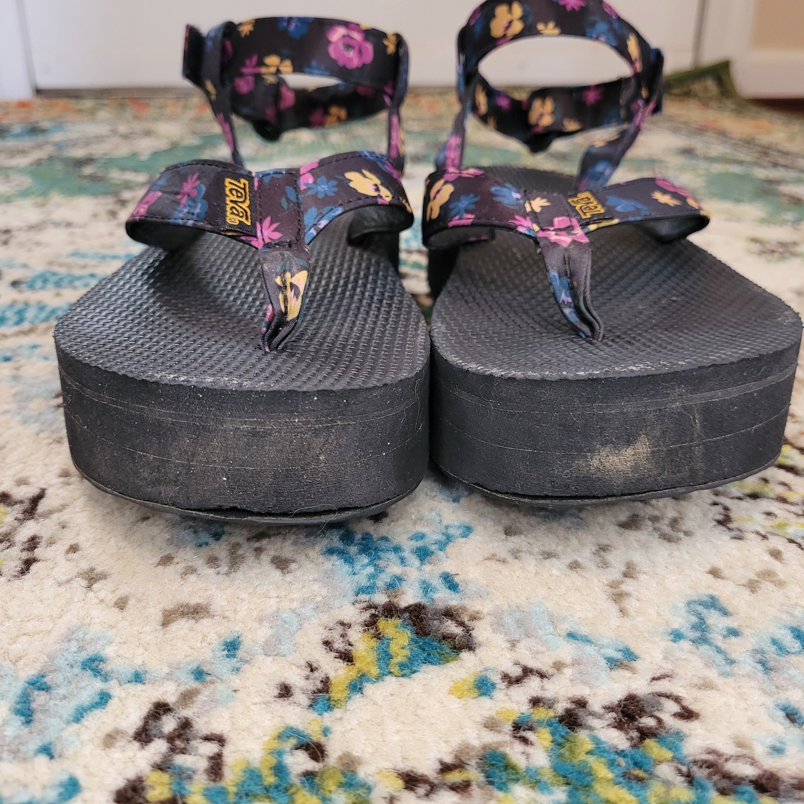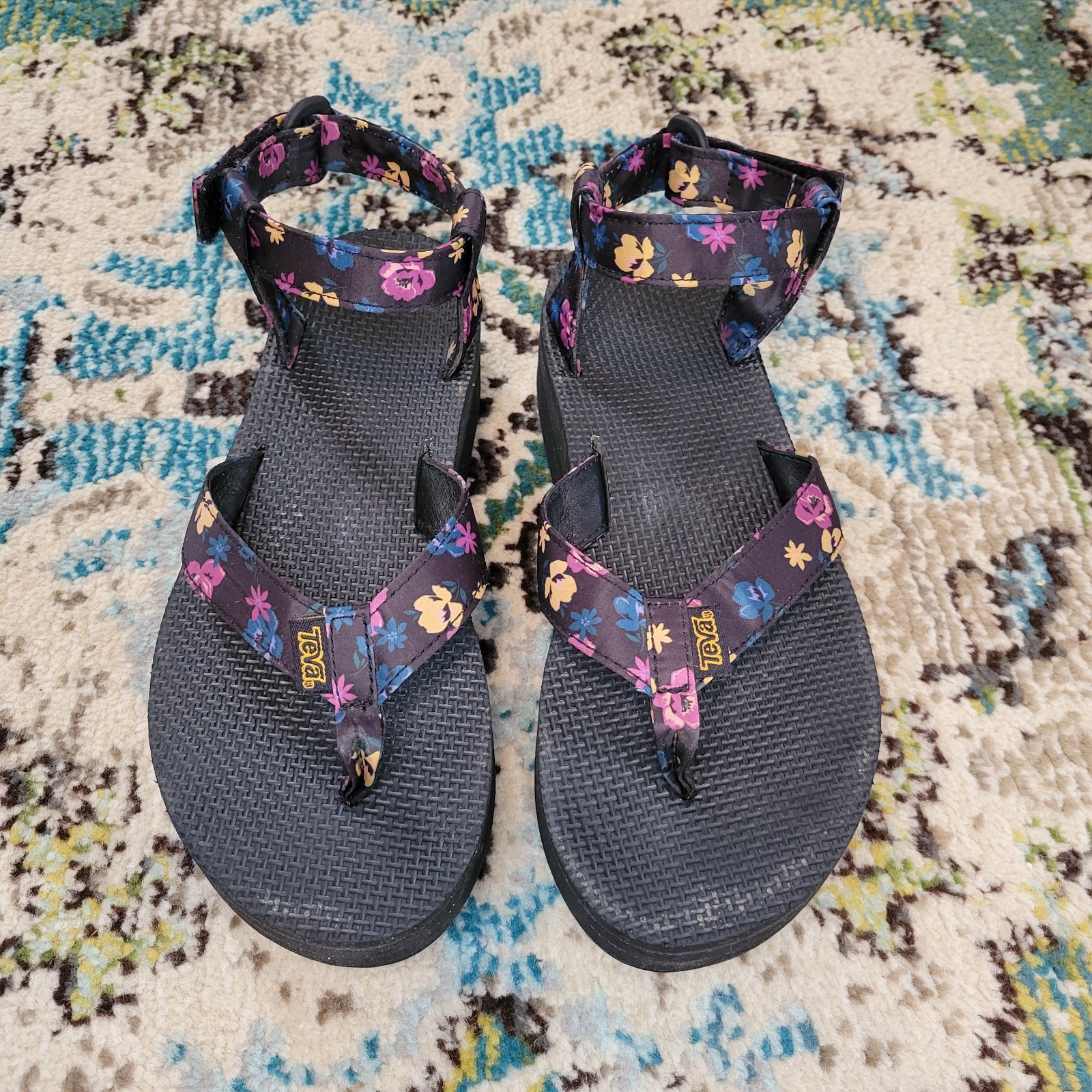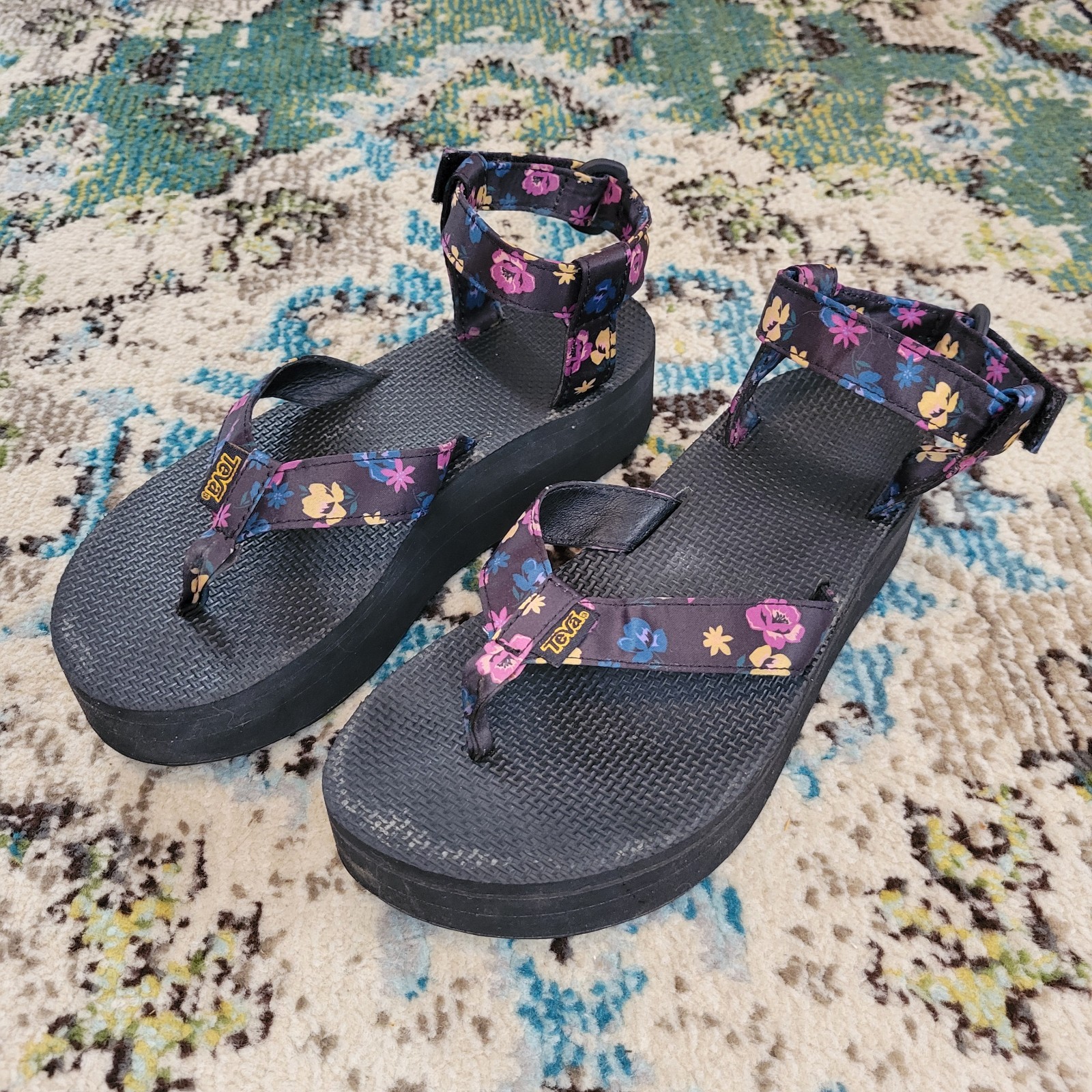 The Teva Platform Floral 1010155 Women's Purple Adjustable Strap Sandals in size 7 are a stylish and comfortable choice for any casual outfit. Featuring a floral pattern, Velcro closure, and adjustable strap, these platform sandals offer a trendy and practical option for everyday wear. With a mid heel height and platform style, they provide both support and fashion-forward design, making them a versatile addition to any woman's shoe collection. Made with a fabric upper material, these Teva sandals are a reliable choice for any wardrobe.