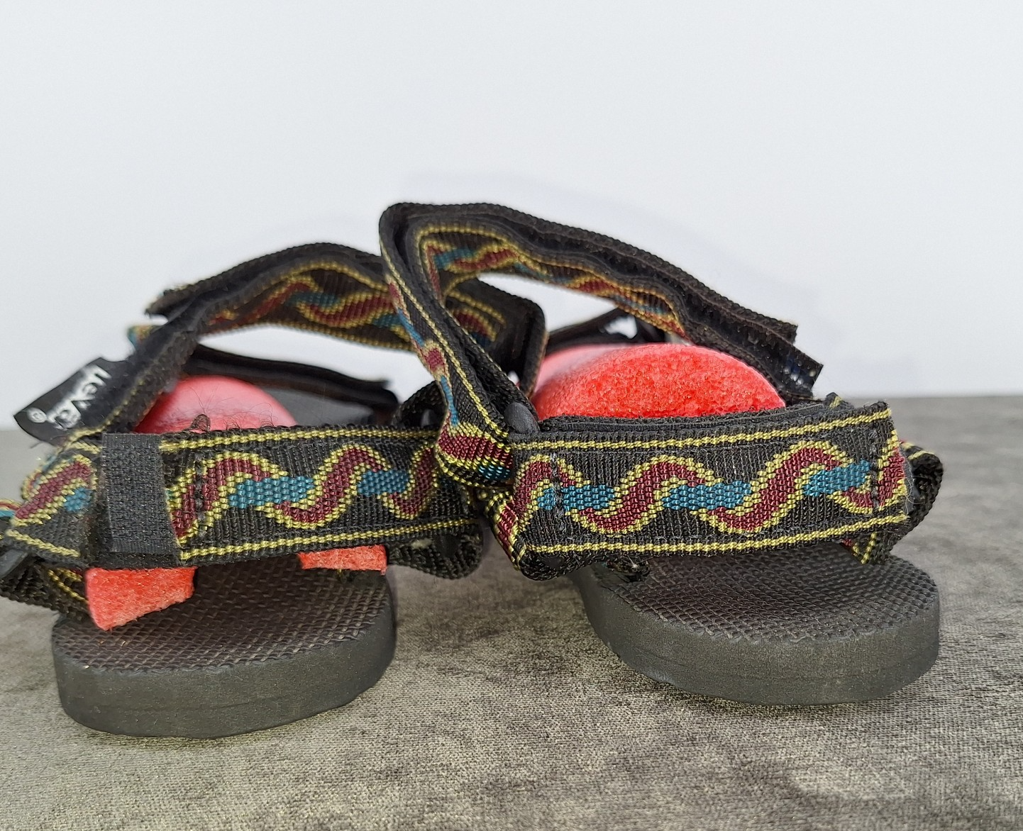Color:MulticolorCustomized:NoBrand:TevaSeason:Spring, SummerModel:Teva Original UniversalTheme:MetalFeatures:Adjustable, Adjustable Strap, Ankle Strap, Breathable, ComfortAccents:LogoPersonalize:NoClosure:Hook & LoopPattern:SolidType:SandalShoe Width:StandardSeller Notes:“These are in excellent condition.Notice the measurements, the size tag is missing.”Heel Height:Flat (Under 1 in)Handmade:NoCountry/Region of Manufacture:ChinaUS Shoe Size:10Style:StrappyOutsole Material:RubberUpper Material:Canvas Nylon WebbingLining Material:FabricInsole Material:SuedeHeel Style:FlatVintage:NoDepartment:Women