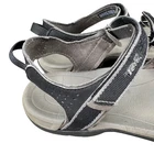 The Teva Verra Sandals in Gray and Black are designed for women in size 11. These sporty sandals feature a strappy style with a striped pattern and hook & loop closure both for ankle and forefoot for a secure fit. Made with leather uppers and an ankle strap, they are suitable for activities like hiking and other casual wear. The flat heel and low heel height make them comfortable for all-day wear, while the Teva Verra model ensures quality and style for outdoor adventures. These sandals offer a mix of practicality and fashion for the active woman. Great pre-owned condition. ⭐Smoke and pet-free ⭐Examine photos carefully as they are part of the description. ⭐If you need more measurements or images, do not hesitate to contact us. ⭐Ships quickly - same or next business day! Returns policy: If you need more measurements or images, do not hesitate to contact us. If you receive your item and it doesn't fit, or is not what you wanted, all we ask is that you return it within 30 days, in the condition we sent it to you in. Please be aware that buyer pays for return shipping. If the item is new with tags, please do not wash or remove the tags. Store tags must be attached for a return. If they are not attached when returned, this will result in less than a full refund. Thank You! 😊