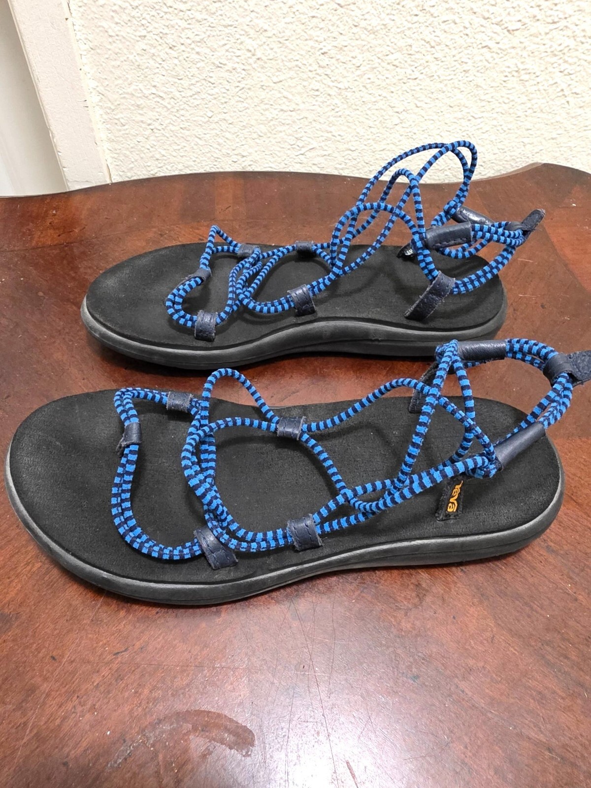 Crafted for warm weather, these Teva sandals feature durable rope straps and a cushioned footbed. Stylish and functional for outdoor activities or casual wear. • Durable rope straps for secure fit • Lightweight sole for optimal comfort • Slip-resistant outsole • Open-toe design for breathability • Adjustable strap closure CONDITIONS pre owned, minor wear, good conditions. see photos for more details.