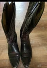 Texas Brand Dark Brown Maroon Cowboy Boots Size 9D Men's with silver tips that are in good condition. Texas brand size 9D has a couple scratches on the right boot toe area--see pictures