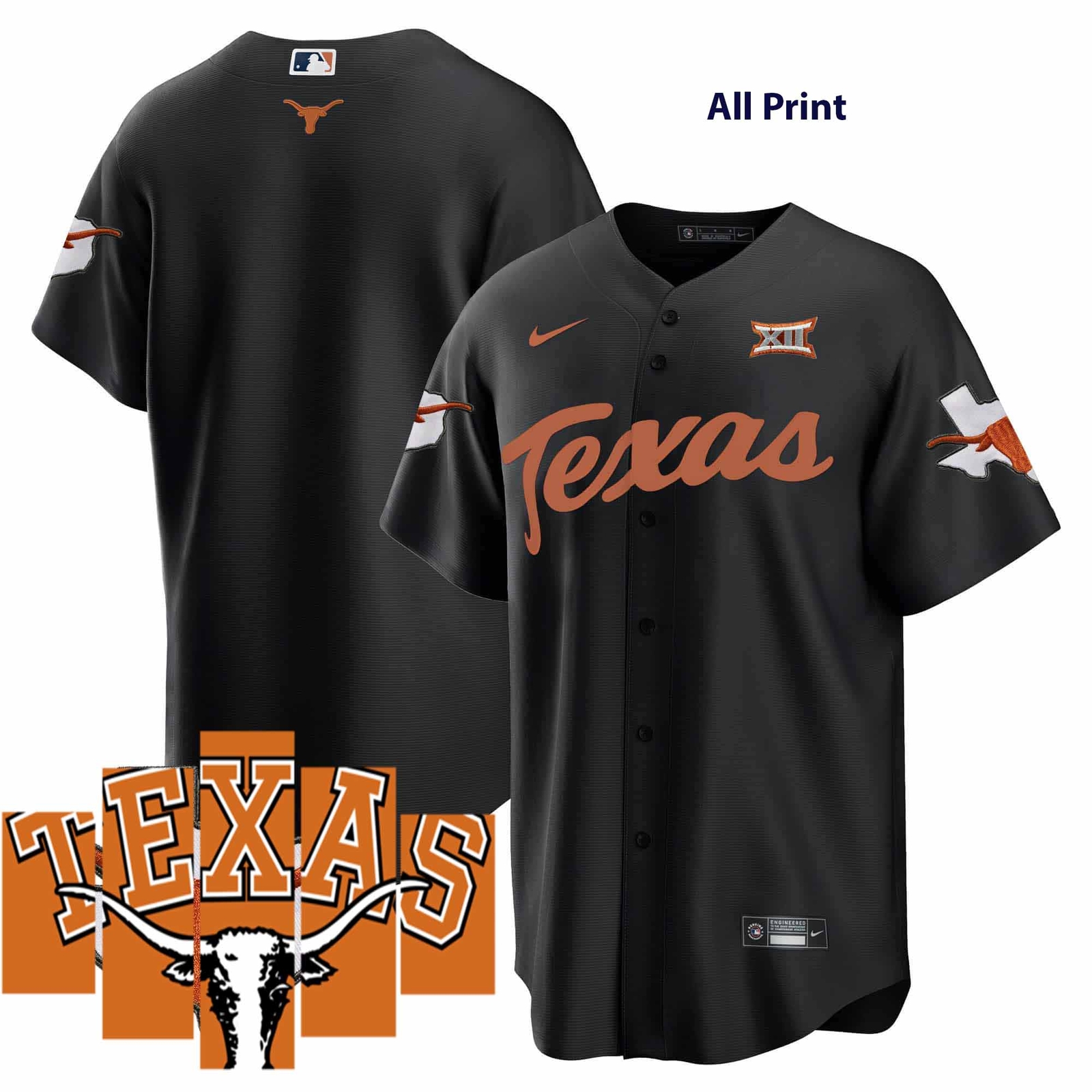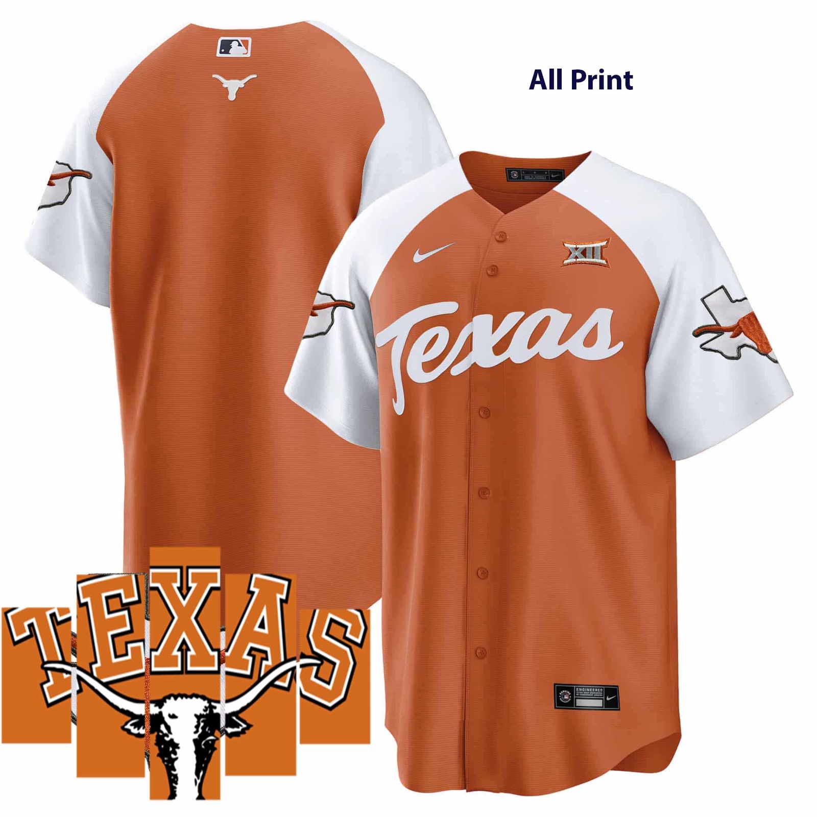 Texas Longhorns #1 Team Baseball Jersey with Custom Print Options